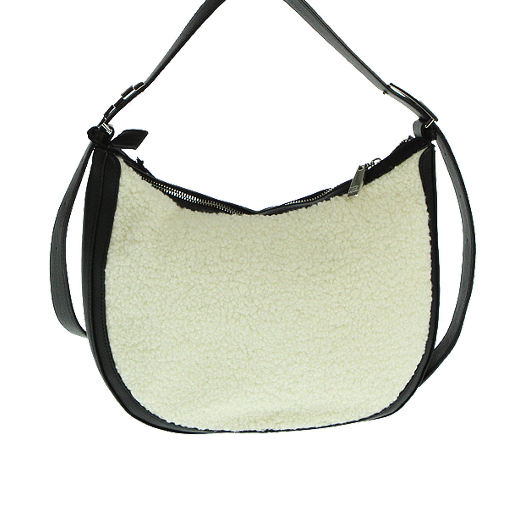 Borsa Ermanno Scervino, a mezzaluna, in ecopelliccia ed ecopelle, bianca, taschino interno con zip, maniglia in ecopelle regolabile, logo con borchiette sul davanti