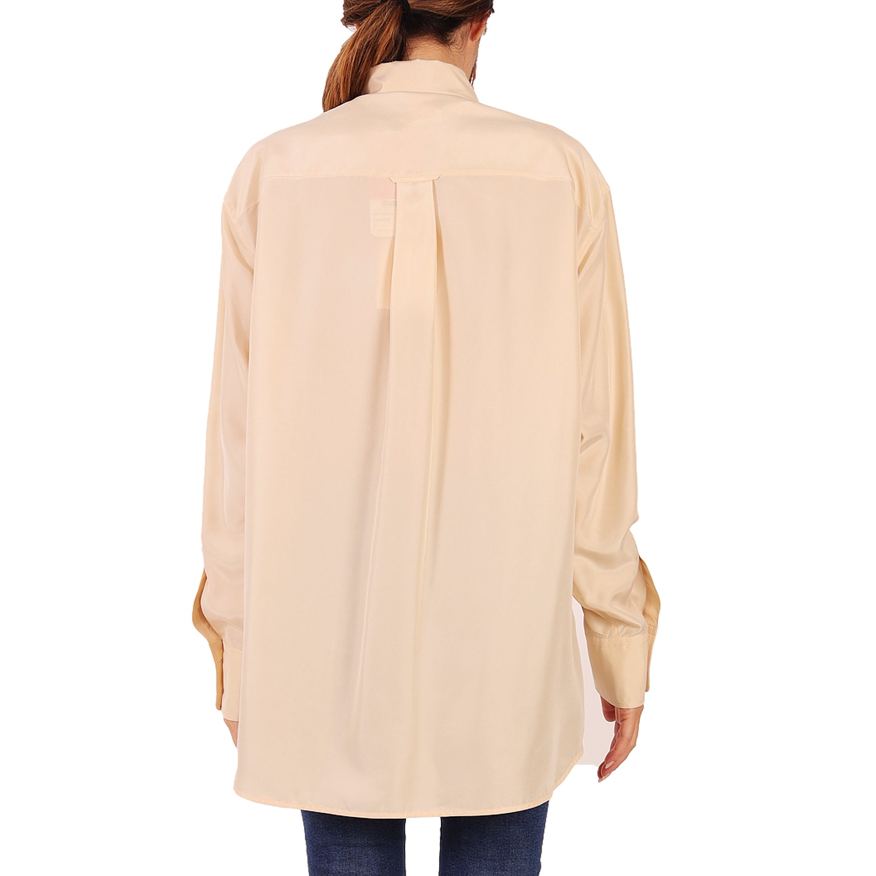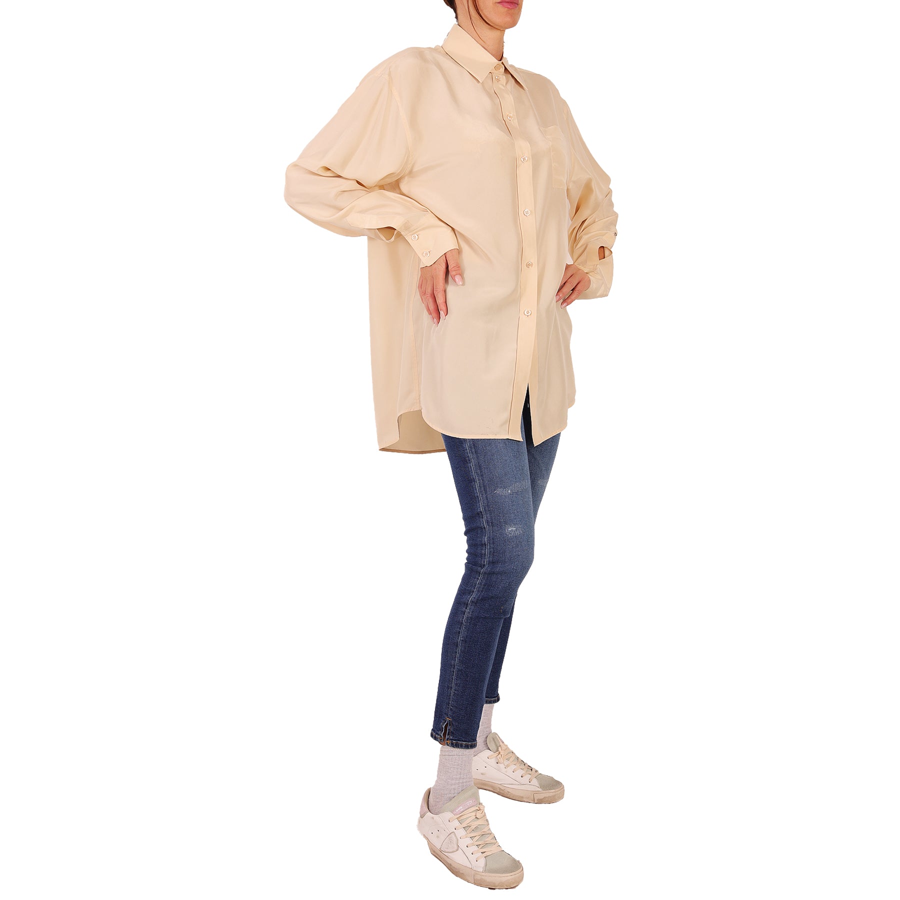 Camicia Sportmax, in seta, colore beige, con taschino, maniche lunghe, chiusura con bottoni