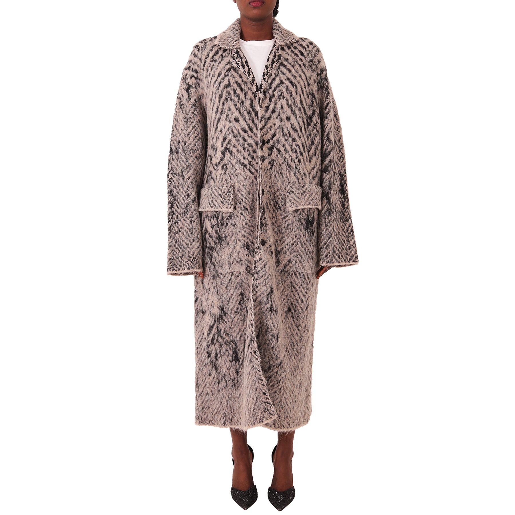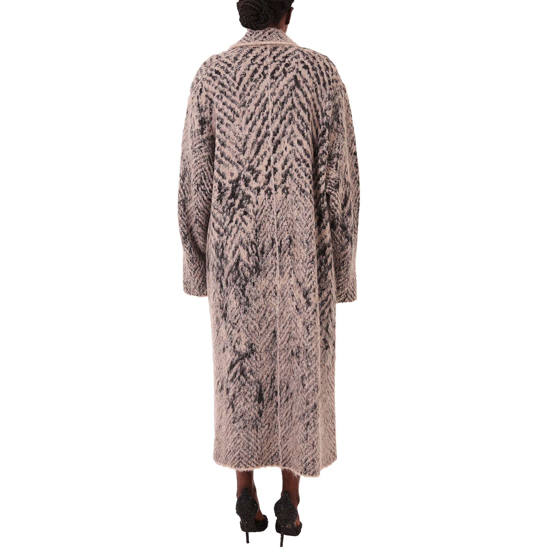 Cappotto Nude, lungo, a fantasia, beige e nero, con bottoni, con tasche, in misto lana