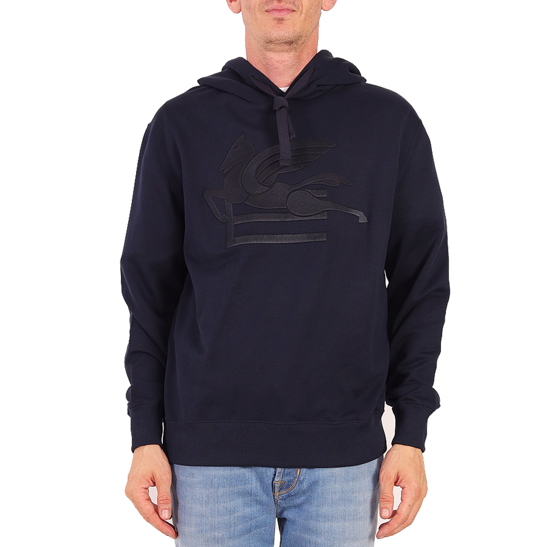 Felpa Etro, blu, con cappuccio, con stemma ricamato sul davanti, in cotone