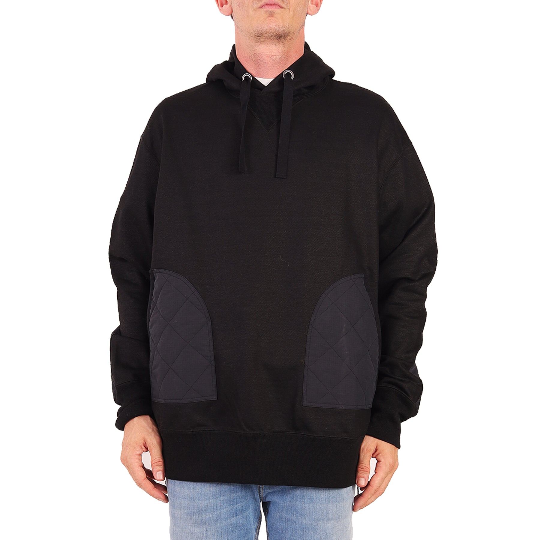 Felpa Junya Watanabe, in cotone, colore nero, con cappuccio, con tasche, elastico in vita ed alle maniche