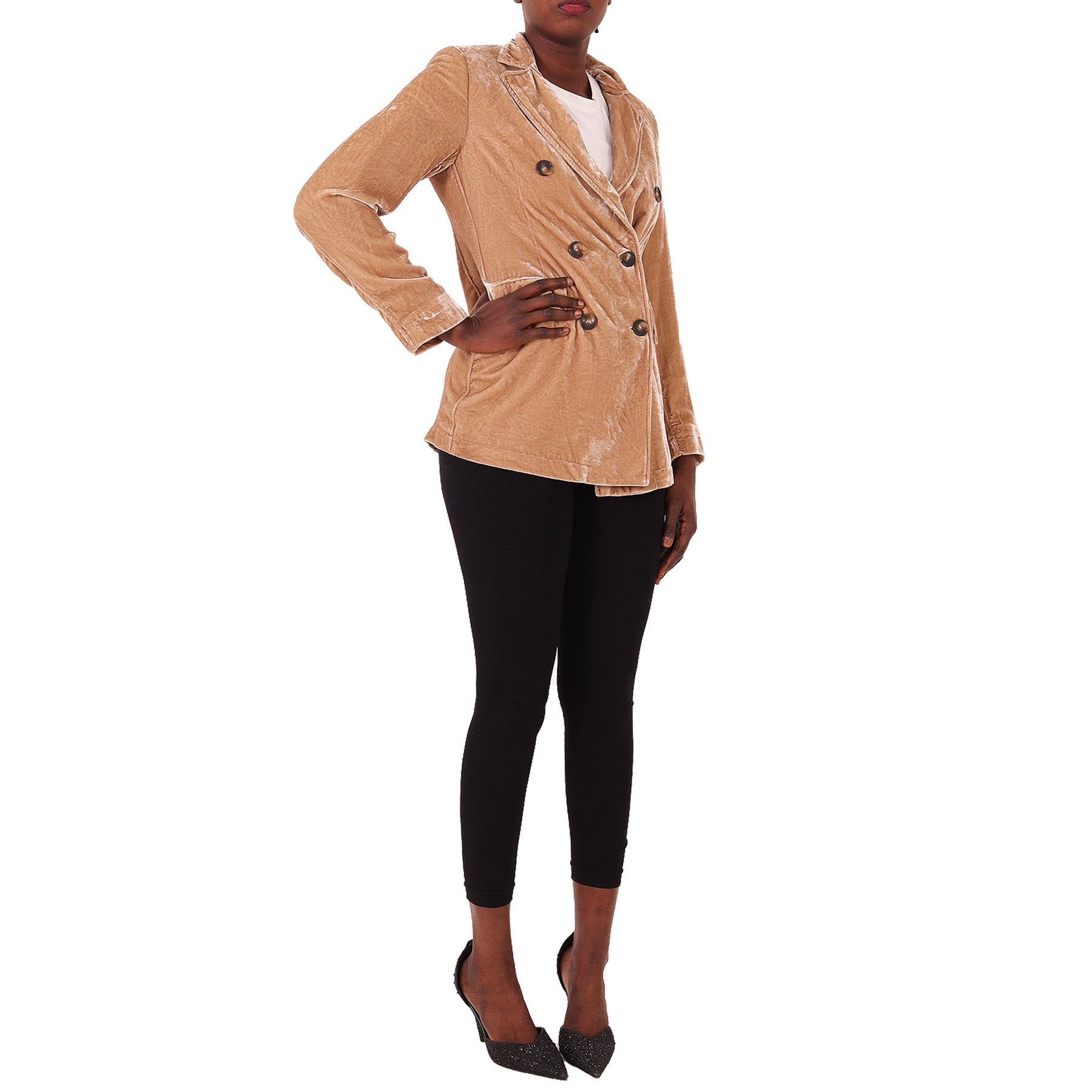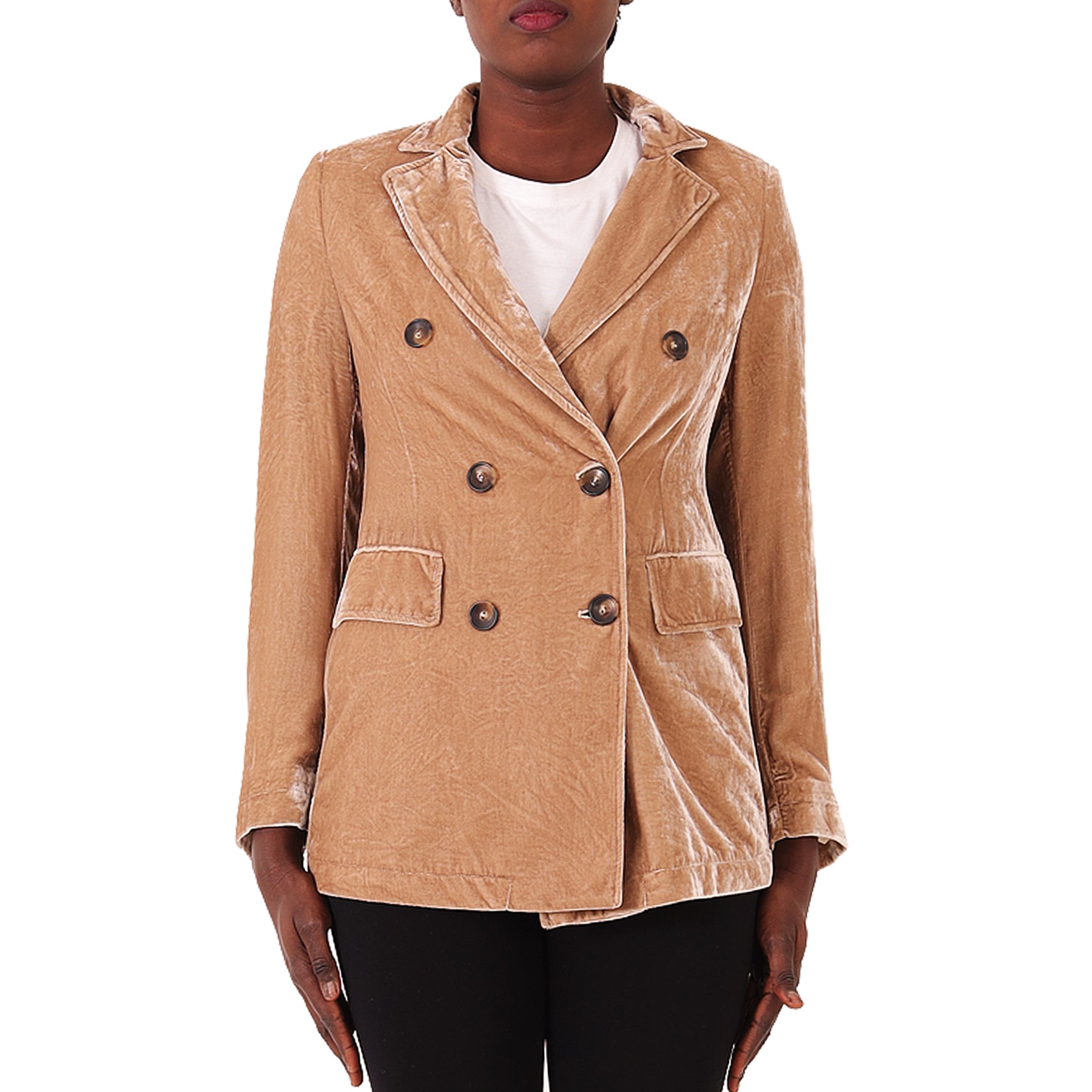 Giacca Diega, beige, in velluto, a doppiopetto, con tasche