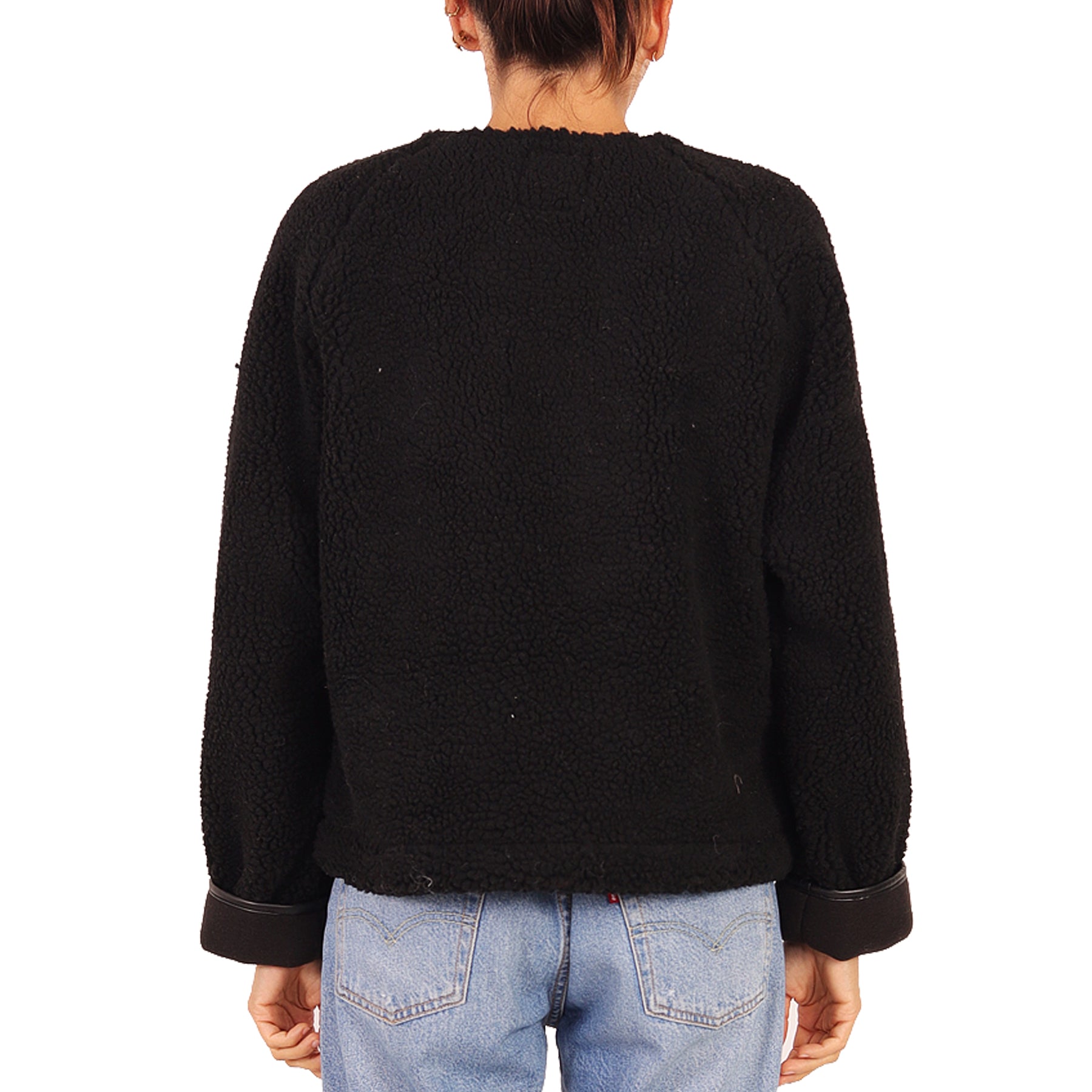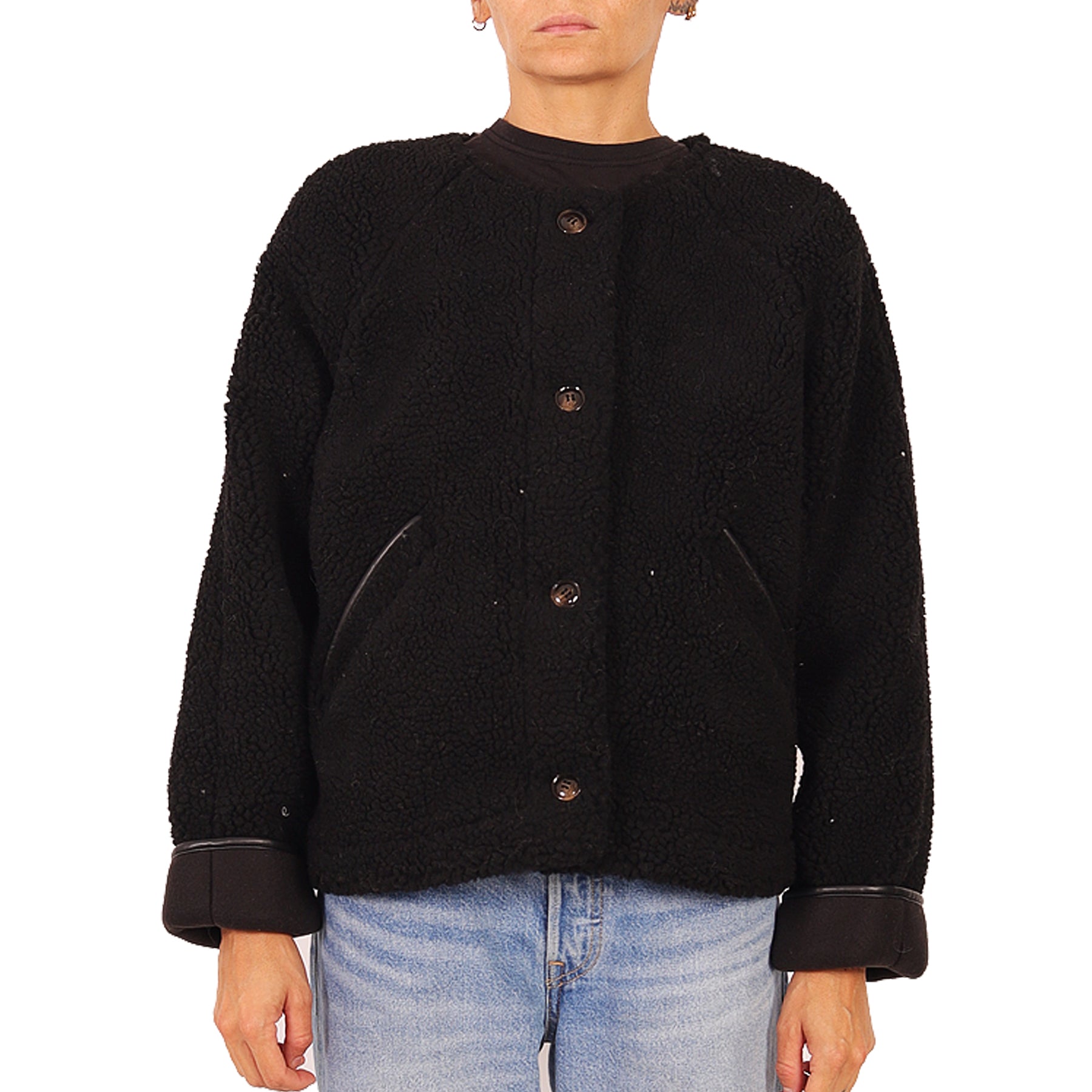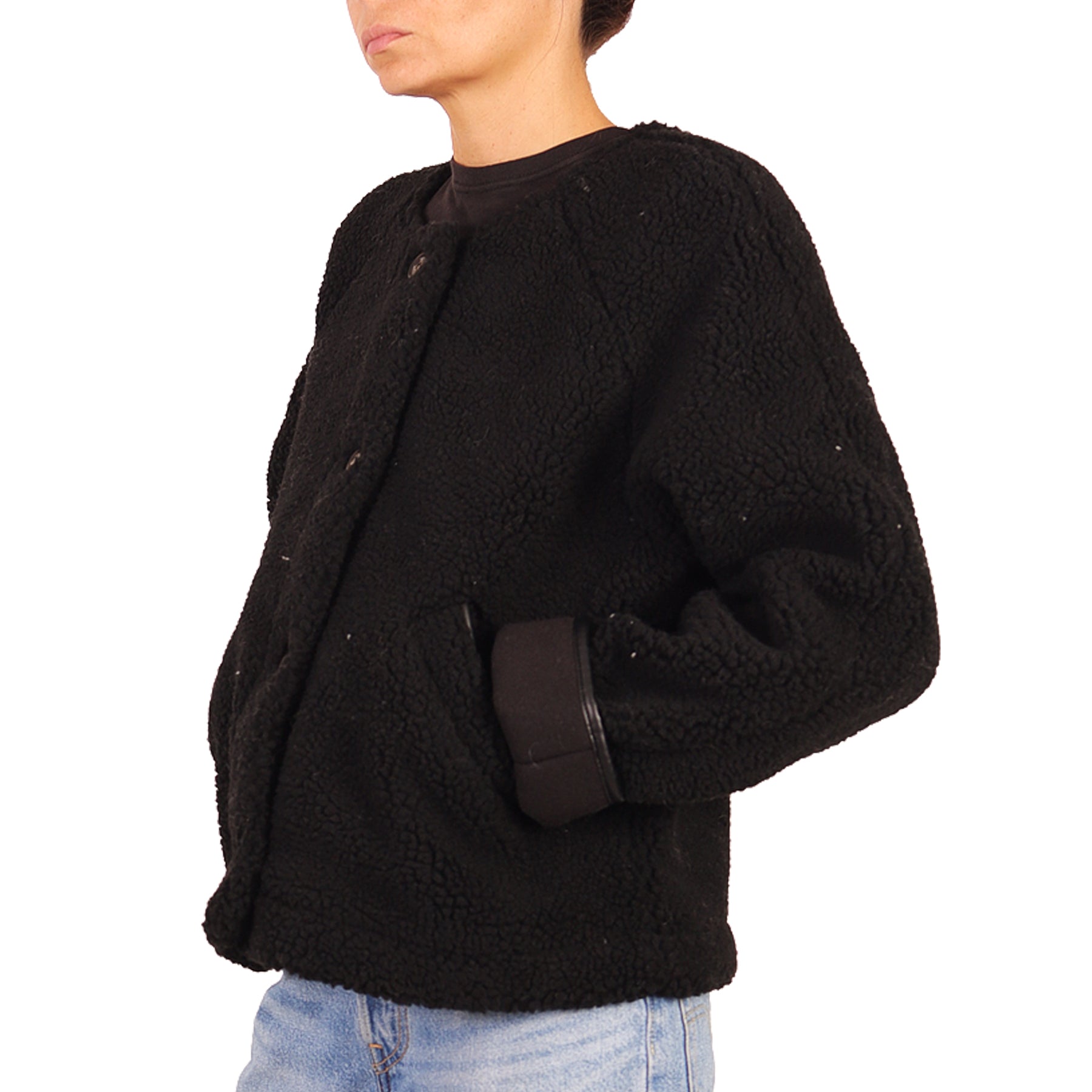 Giacca in montone ecologico Five, nera, con bottoni, con tasche