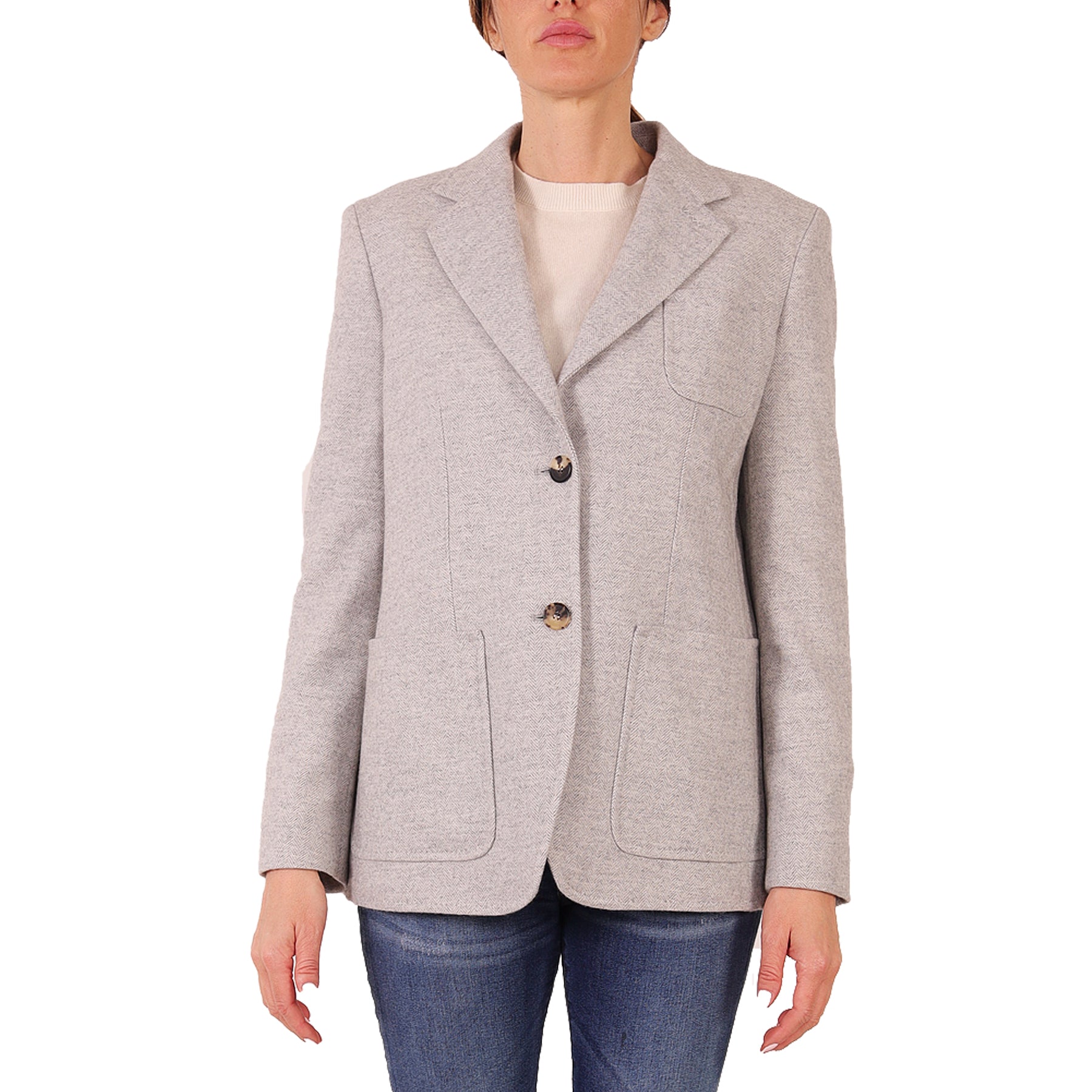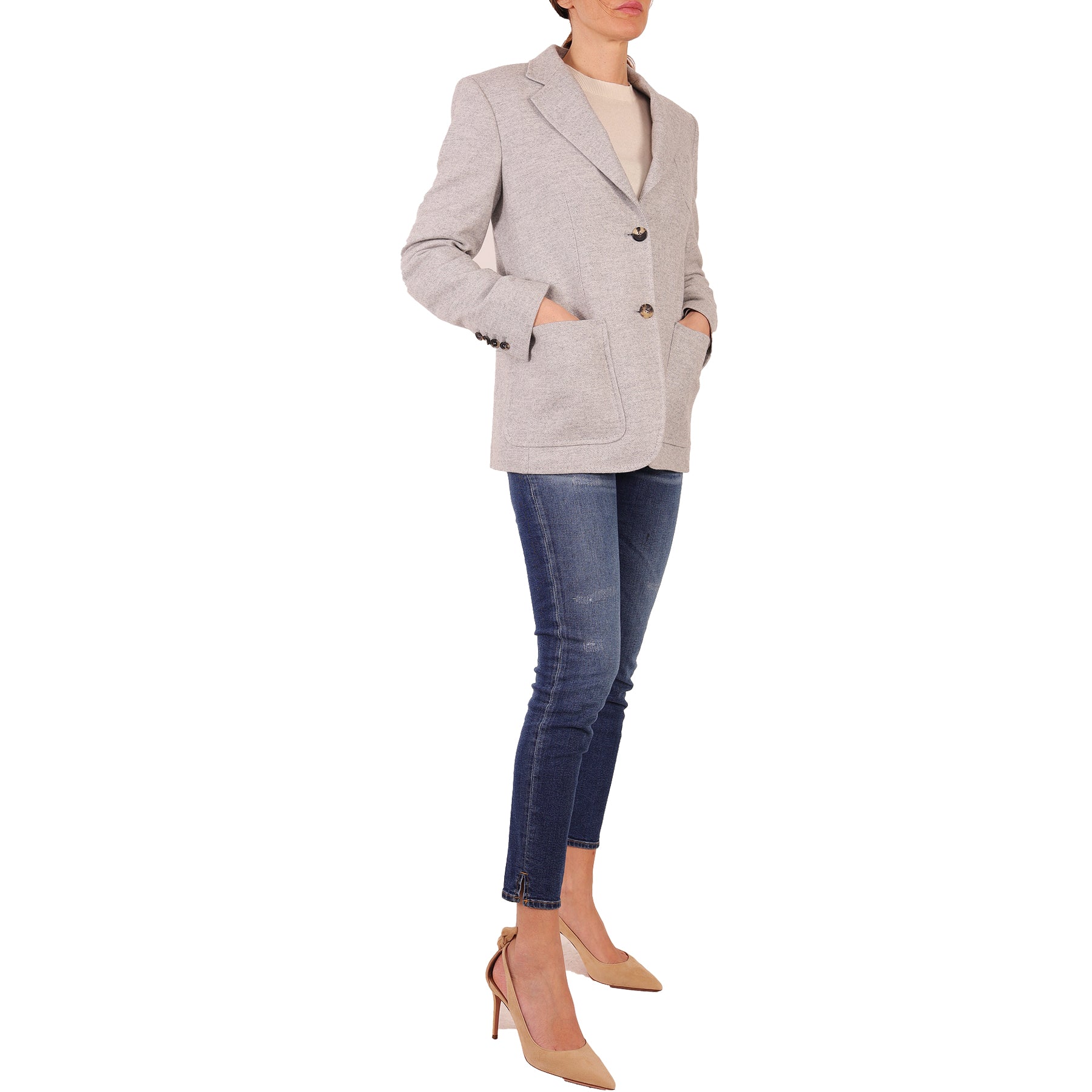 Giacca modello Carpi Max Mara, Spigata, chiusura con bottoni, tasche esterne
