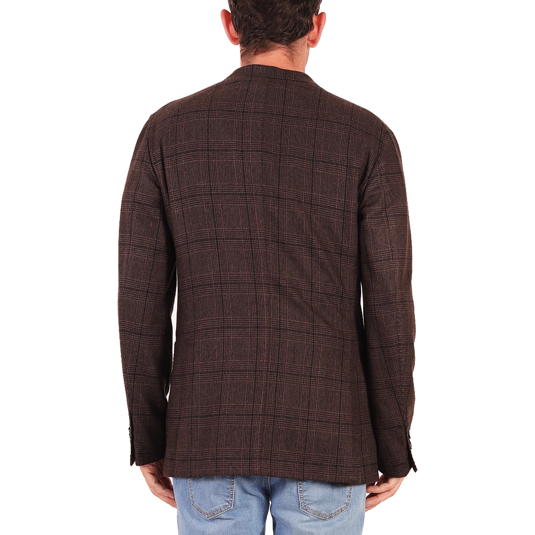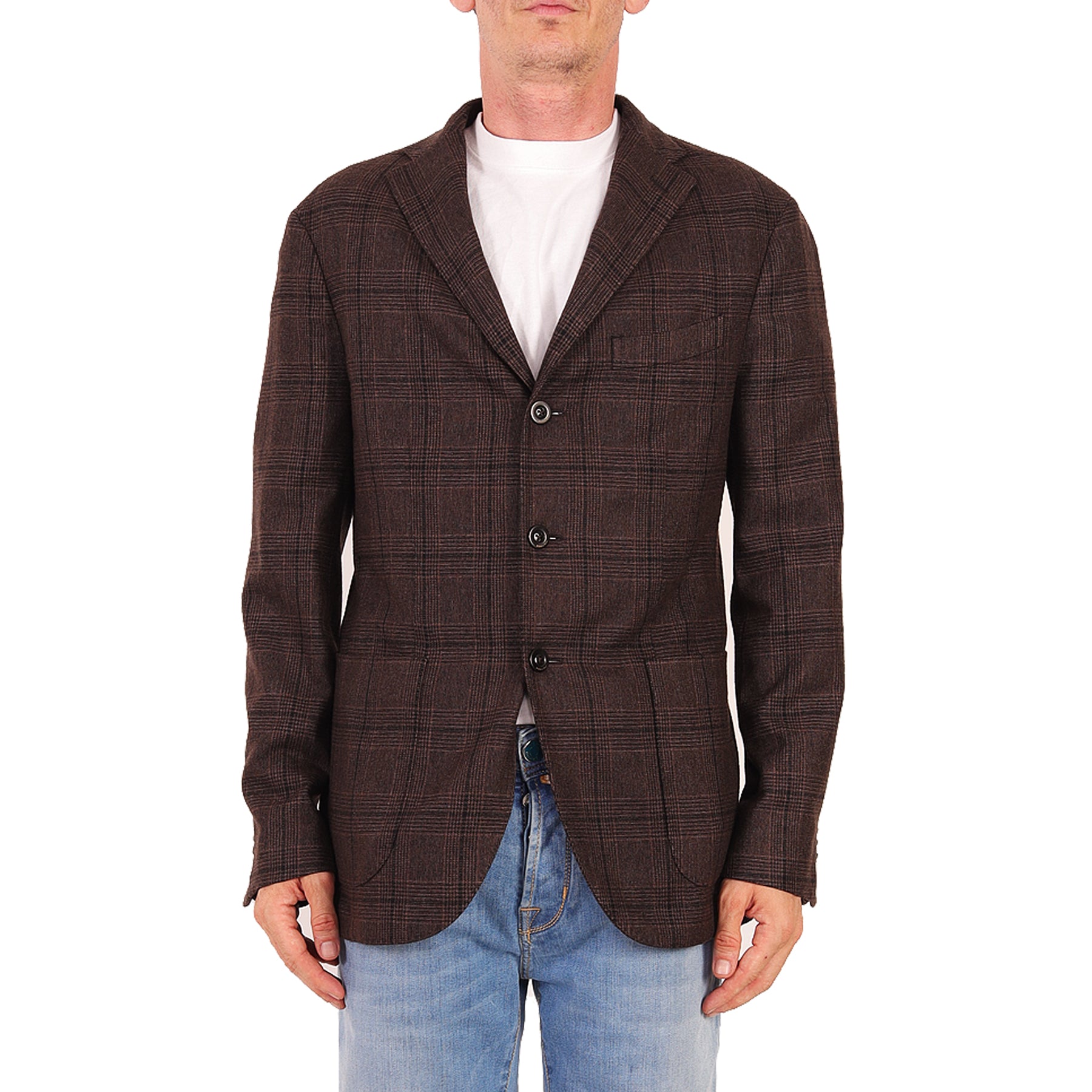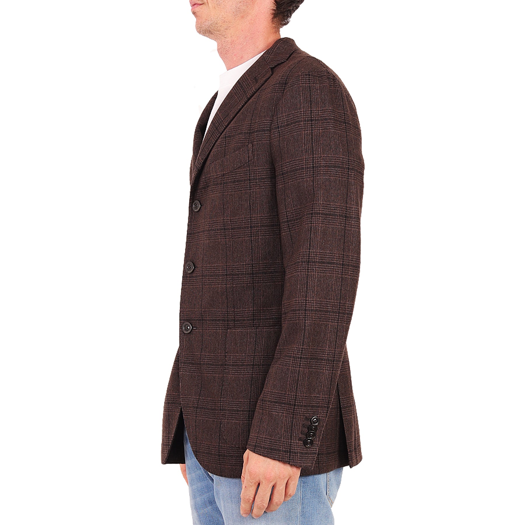 Giacca Boglioli, in lana e poliestere, tartan marrone, con tasche, chiusura 3 bottoni,doppio spacco sul retro