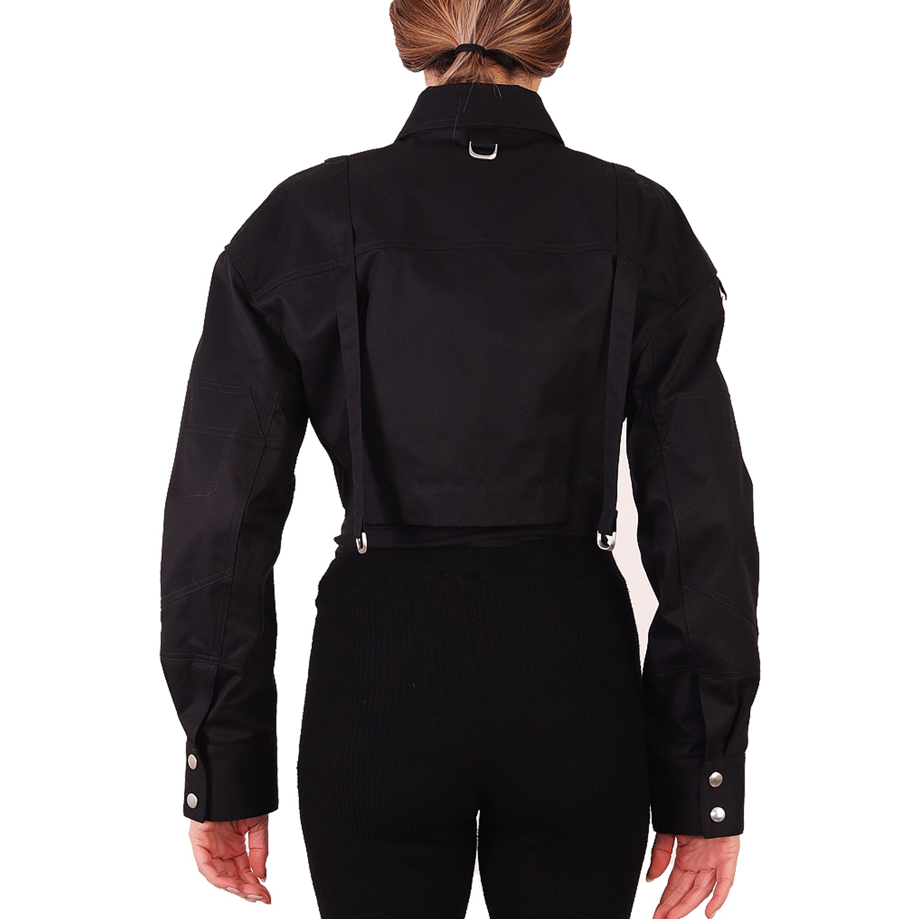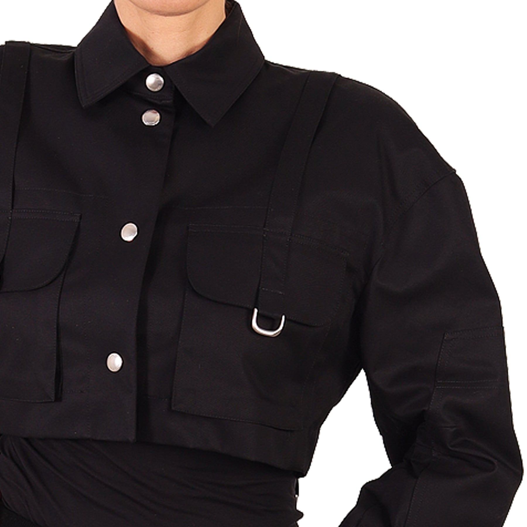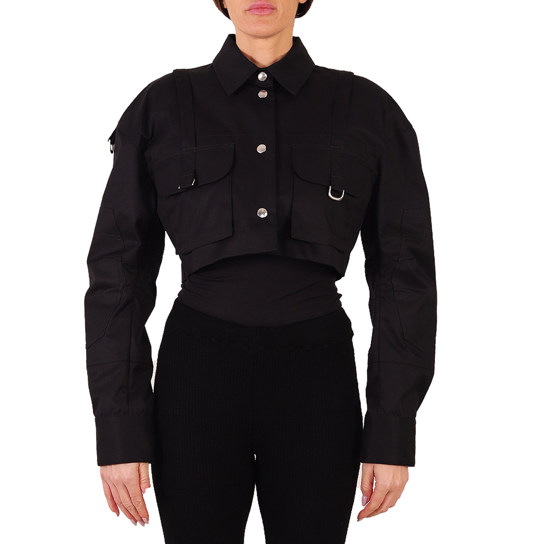 Giacca corta Off-White, nera, con tasche, chiusura con bottoni