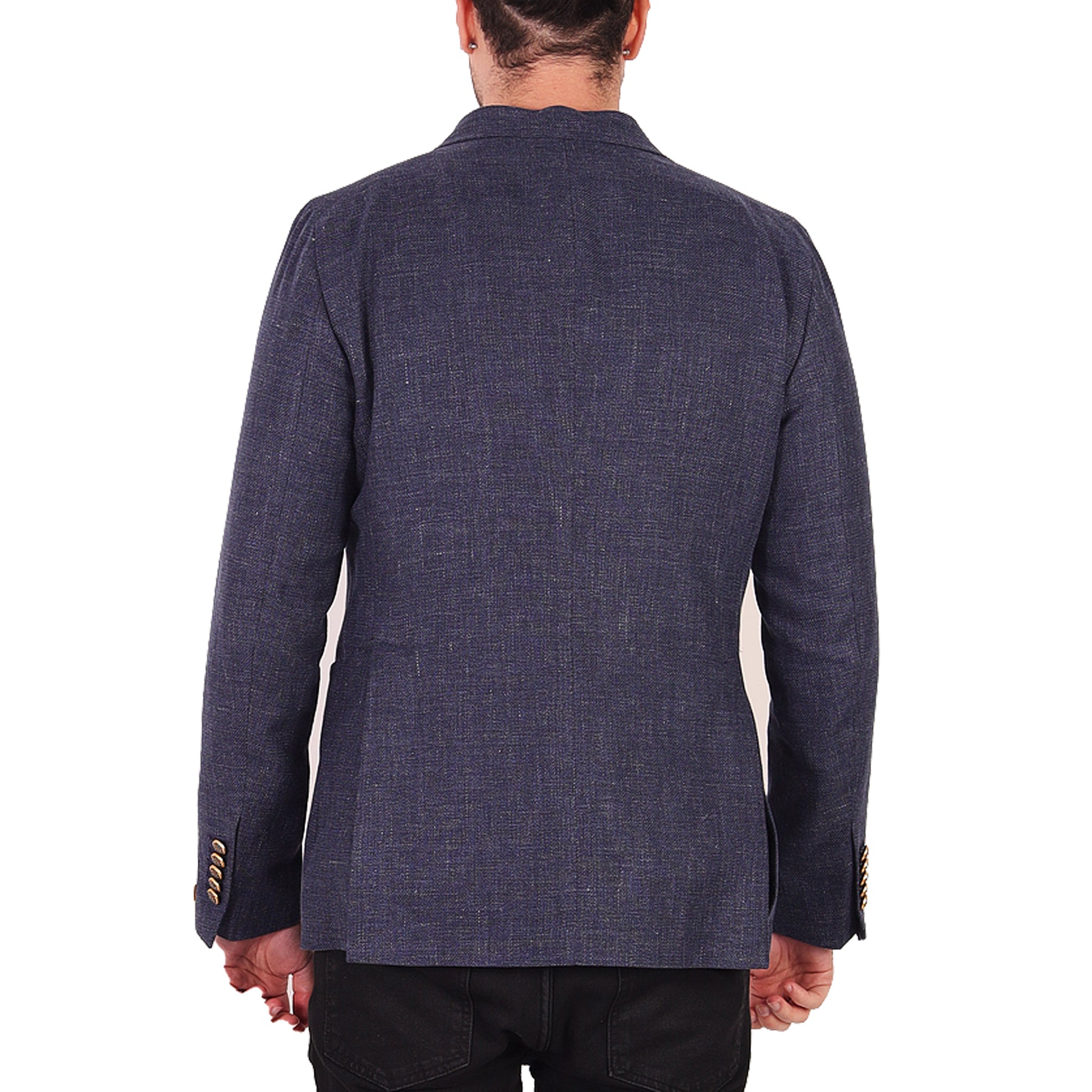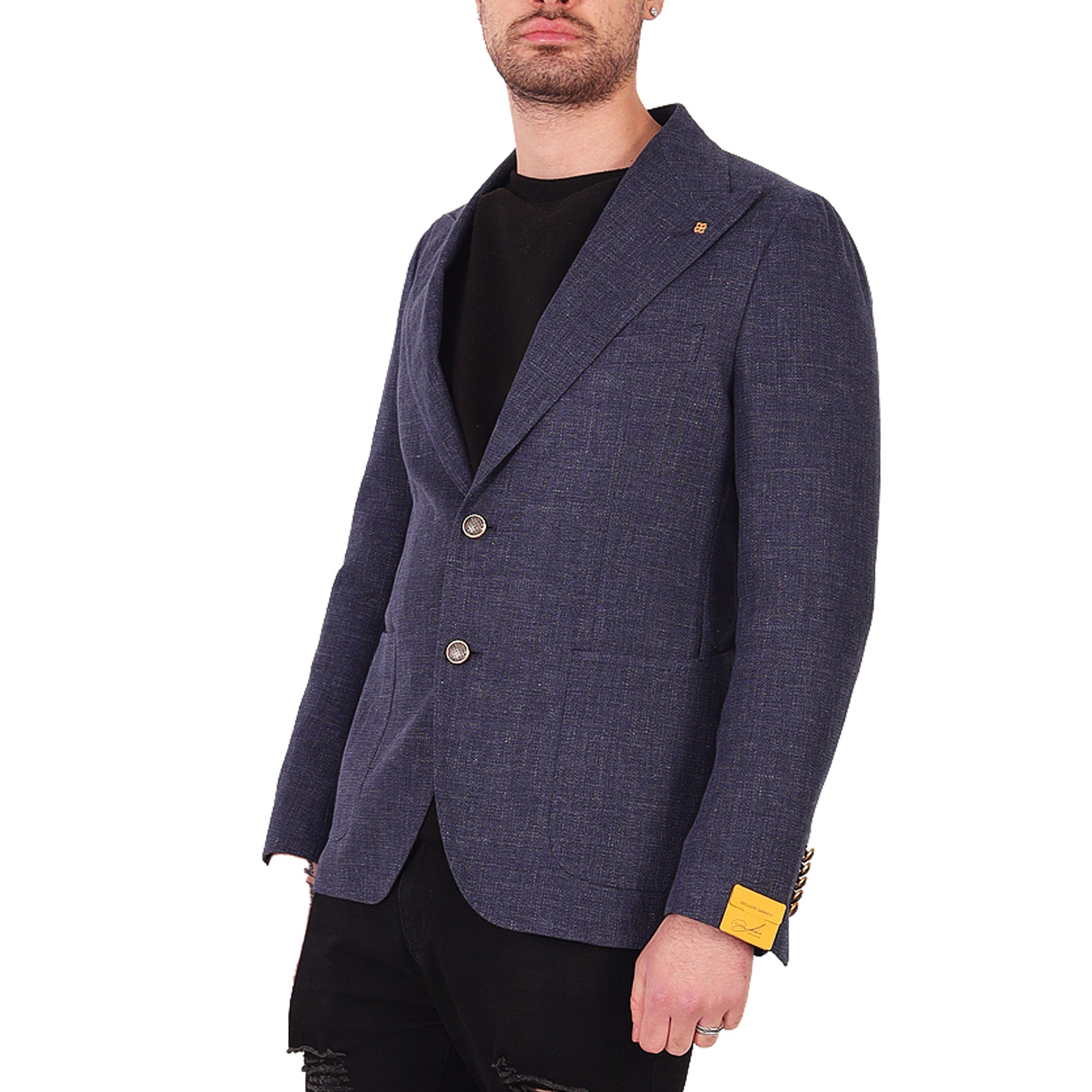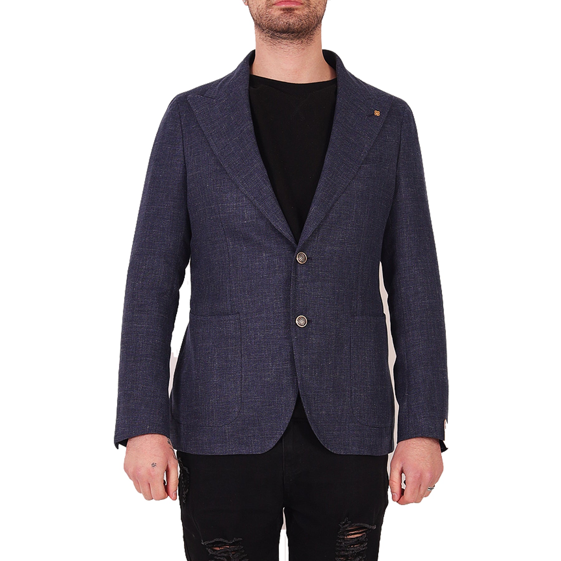 Giacca Tagliatore, blu, in lino cotone, monopetto, con tasche