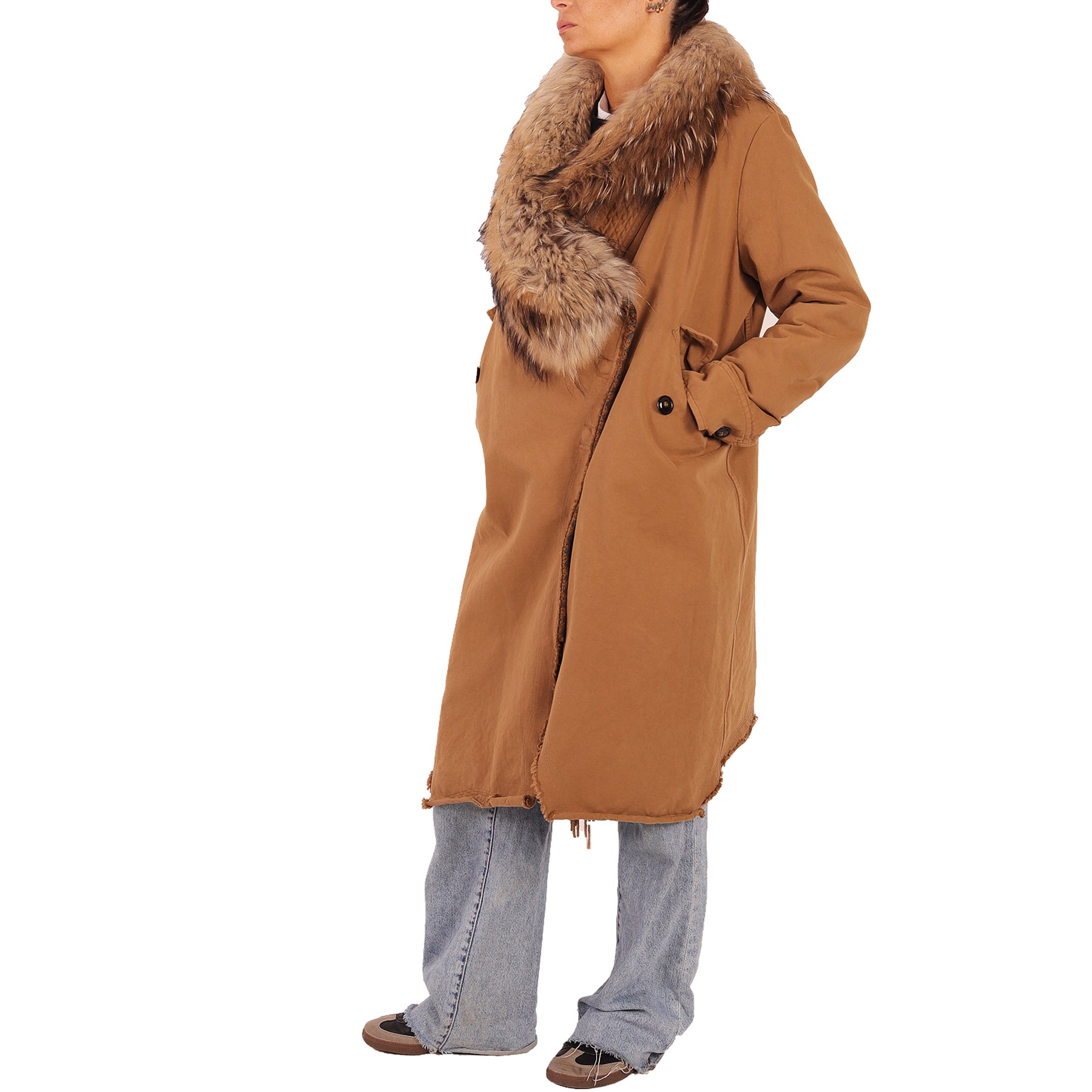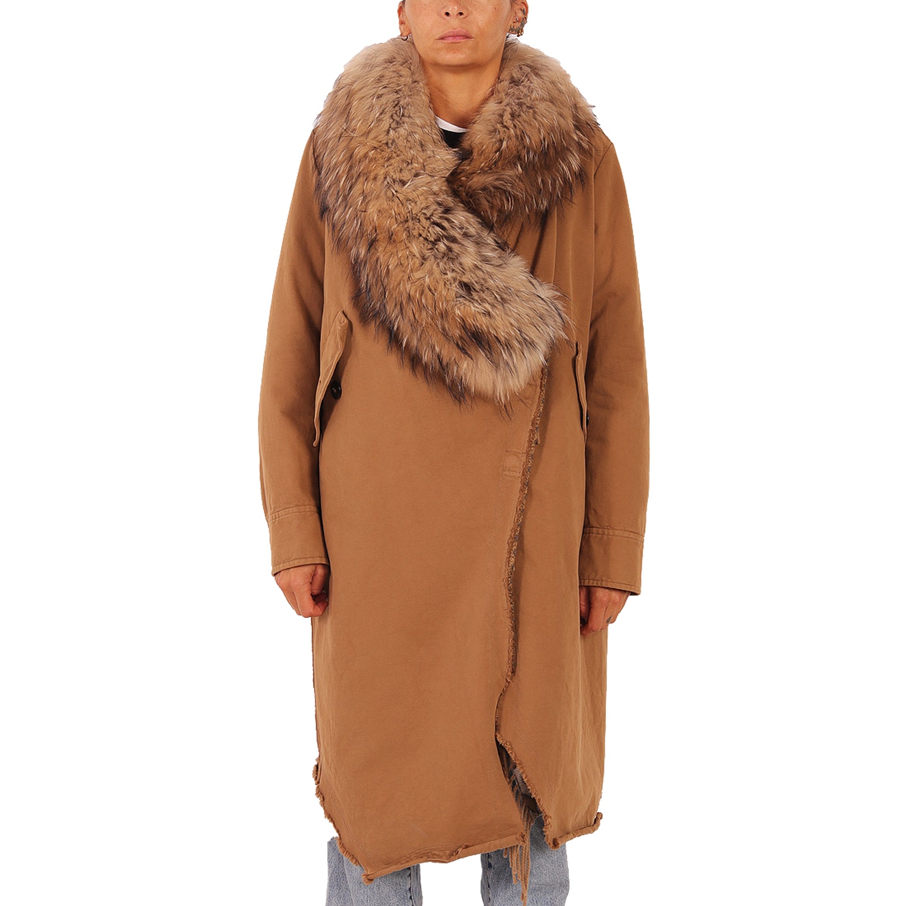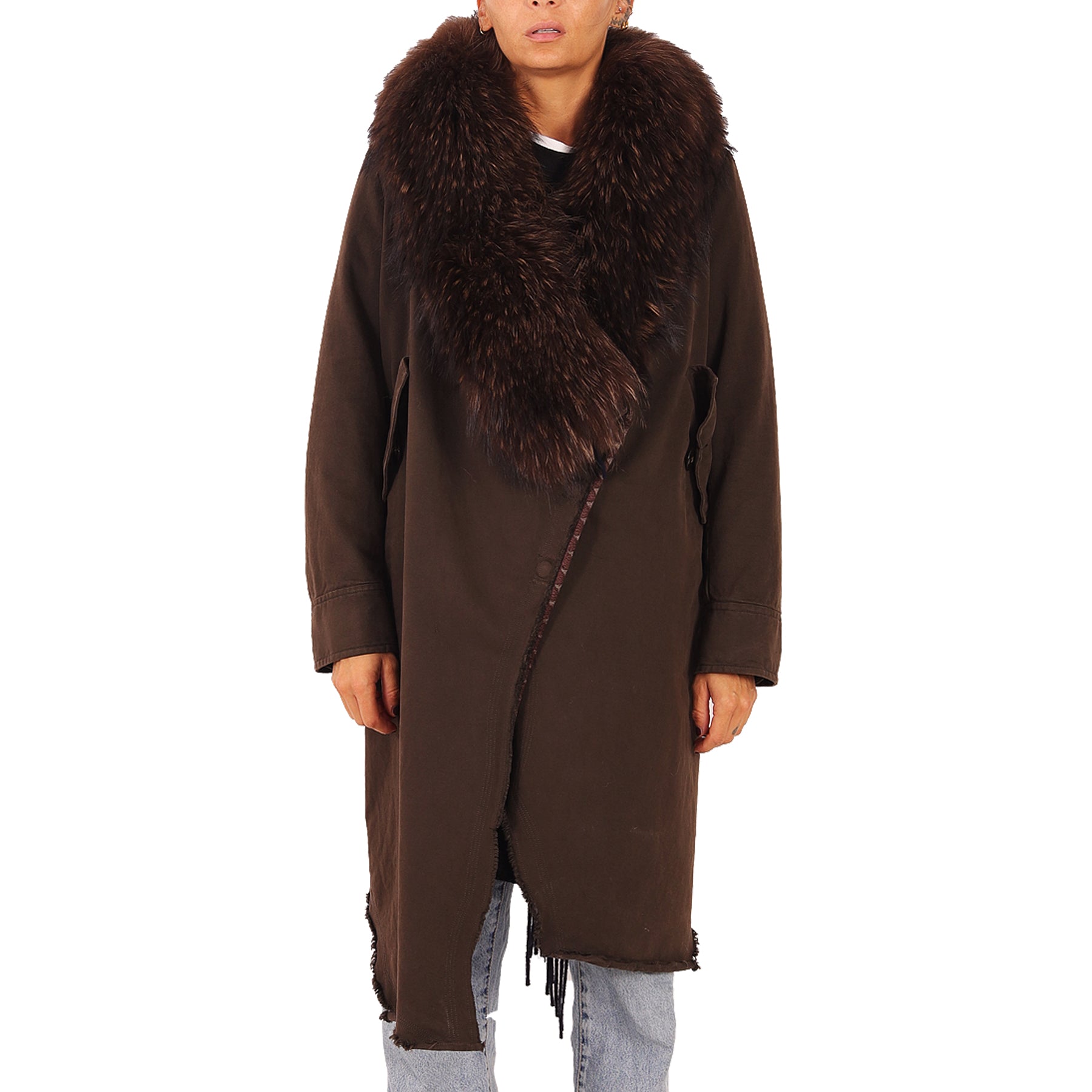 Giaccone+gilet con collo in pelliccia, in cotone, con frange, con tasche, chiusura con bottoni