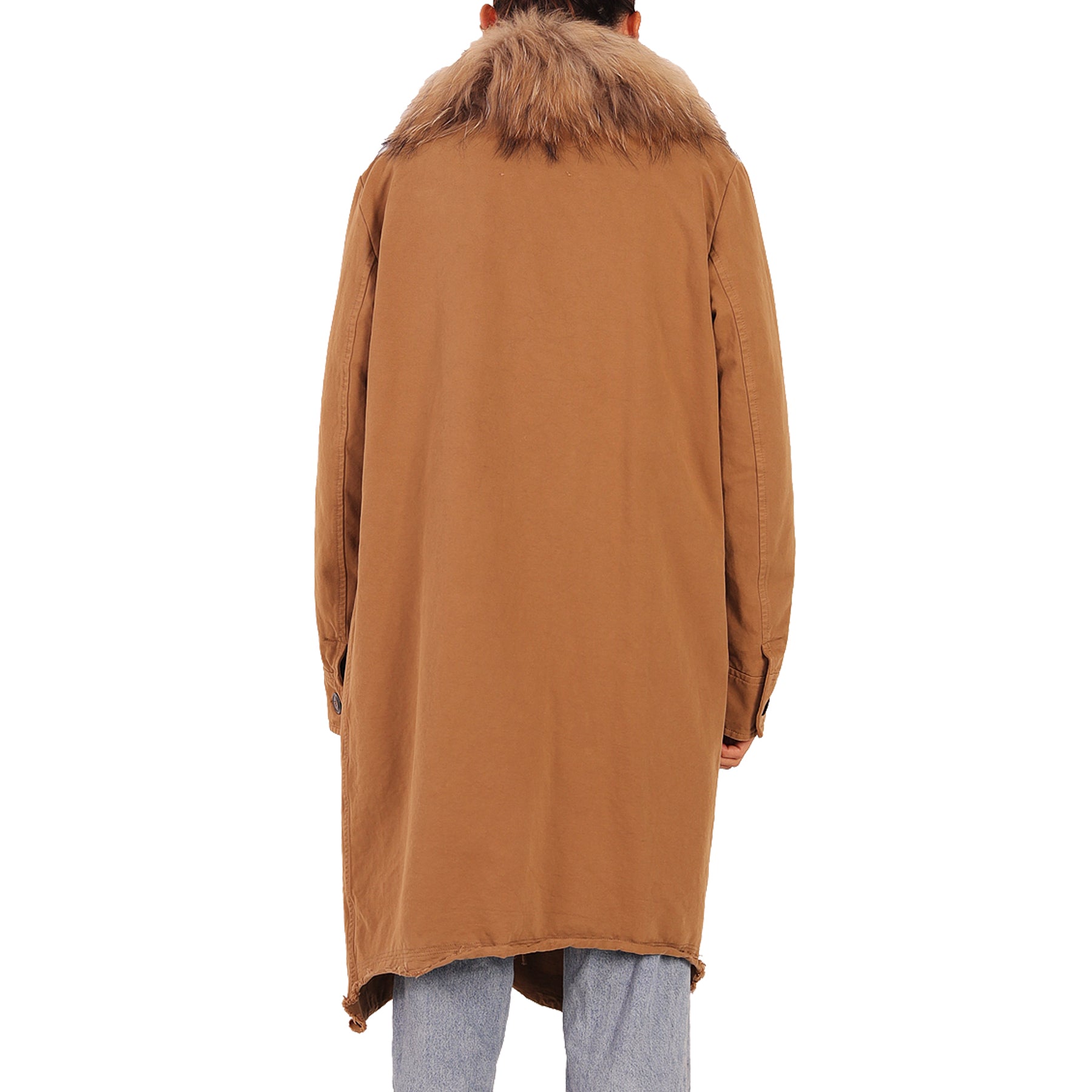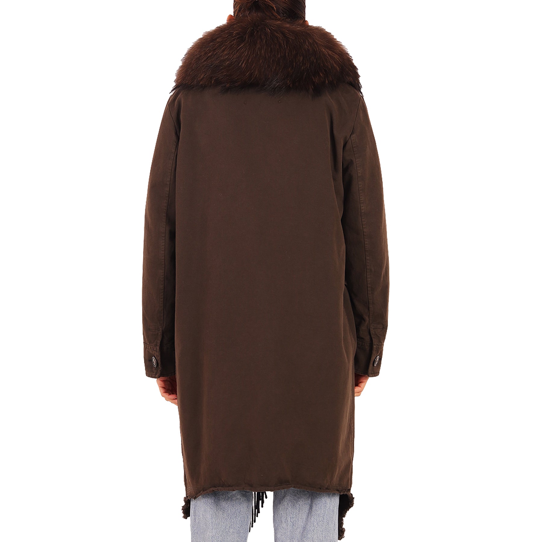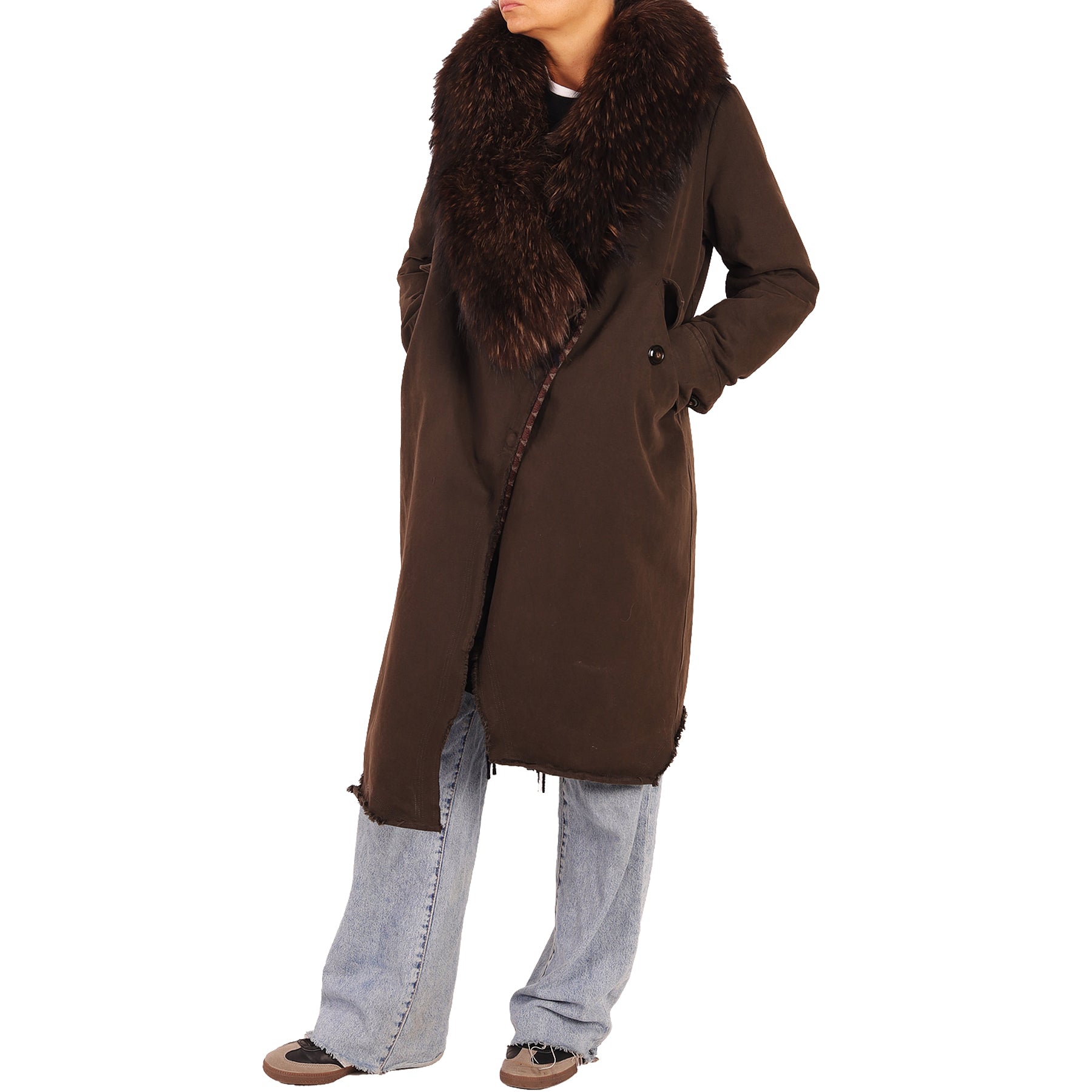 Giaccone+gilet con collo in pelliccia, in cotone, con frange, con tasche, chiusura con bottoni