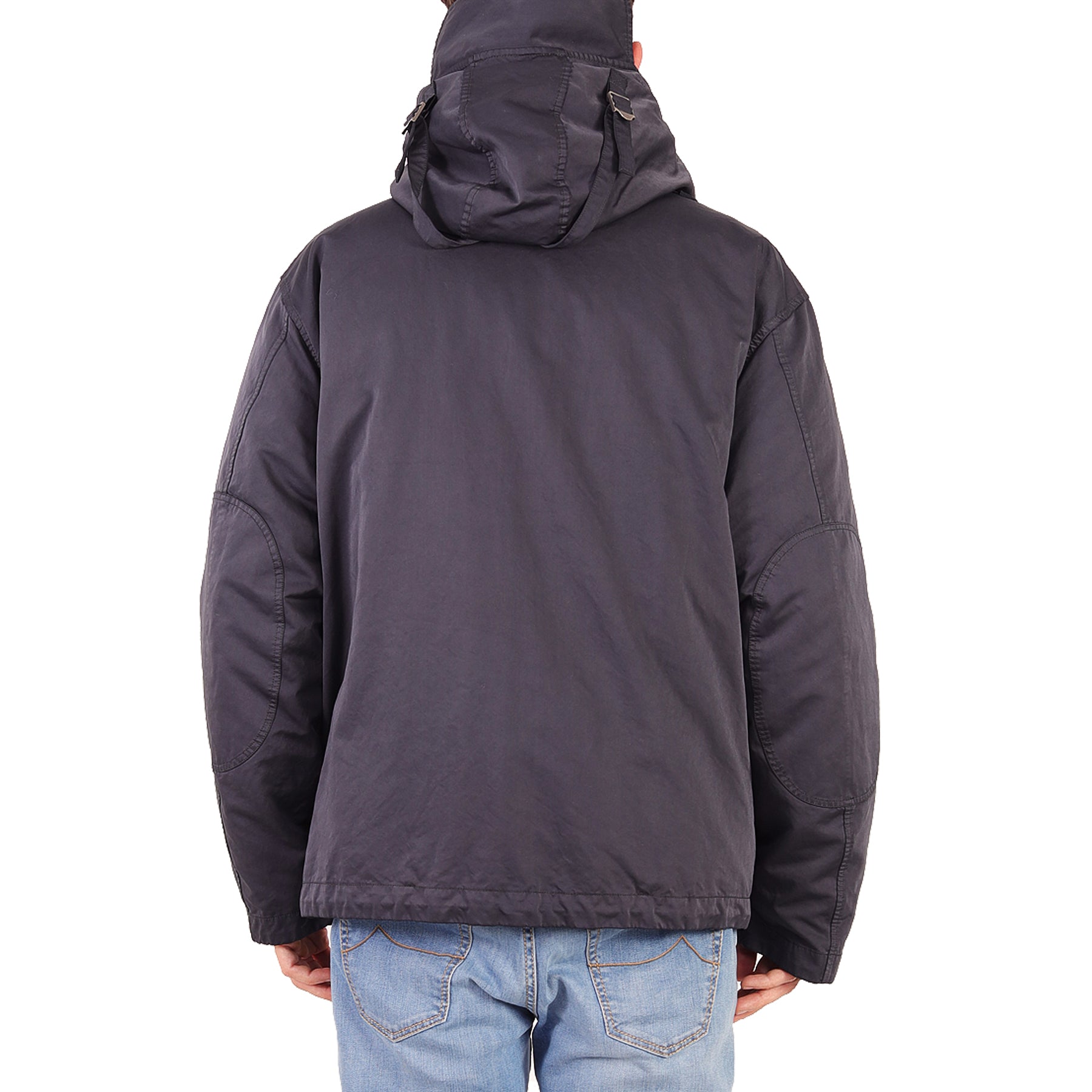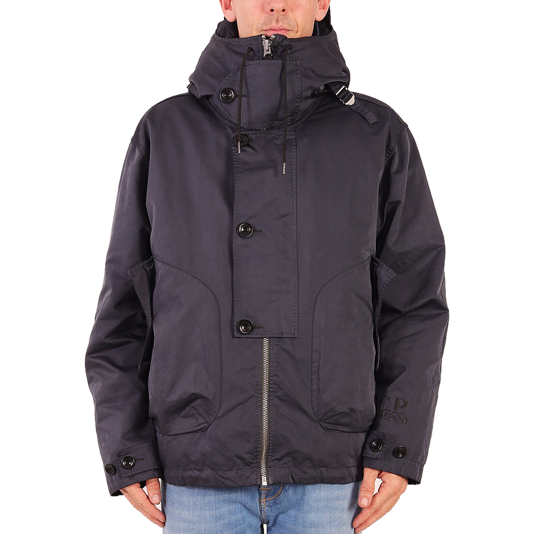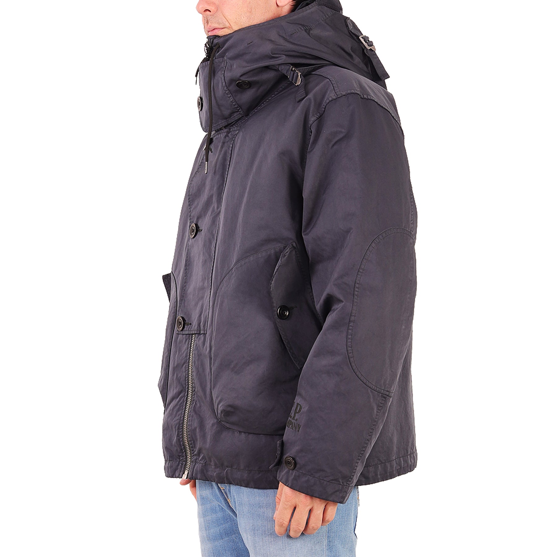 Giubbotto cp company con cappuccio, chiusura con zip e bottoni, tasche esterne