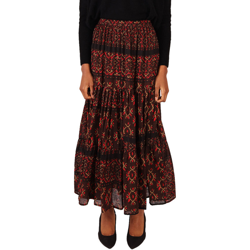 Gonna, Momonì, in cotone, a fantasia, marrone, a balze, elastico in vita.