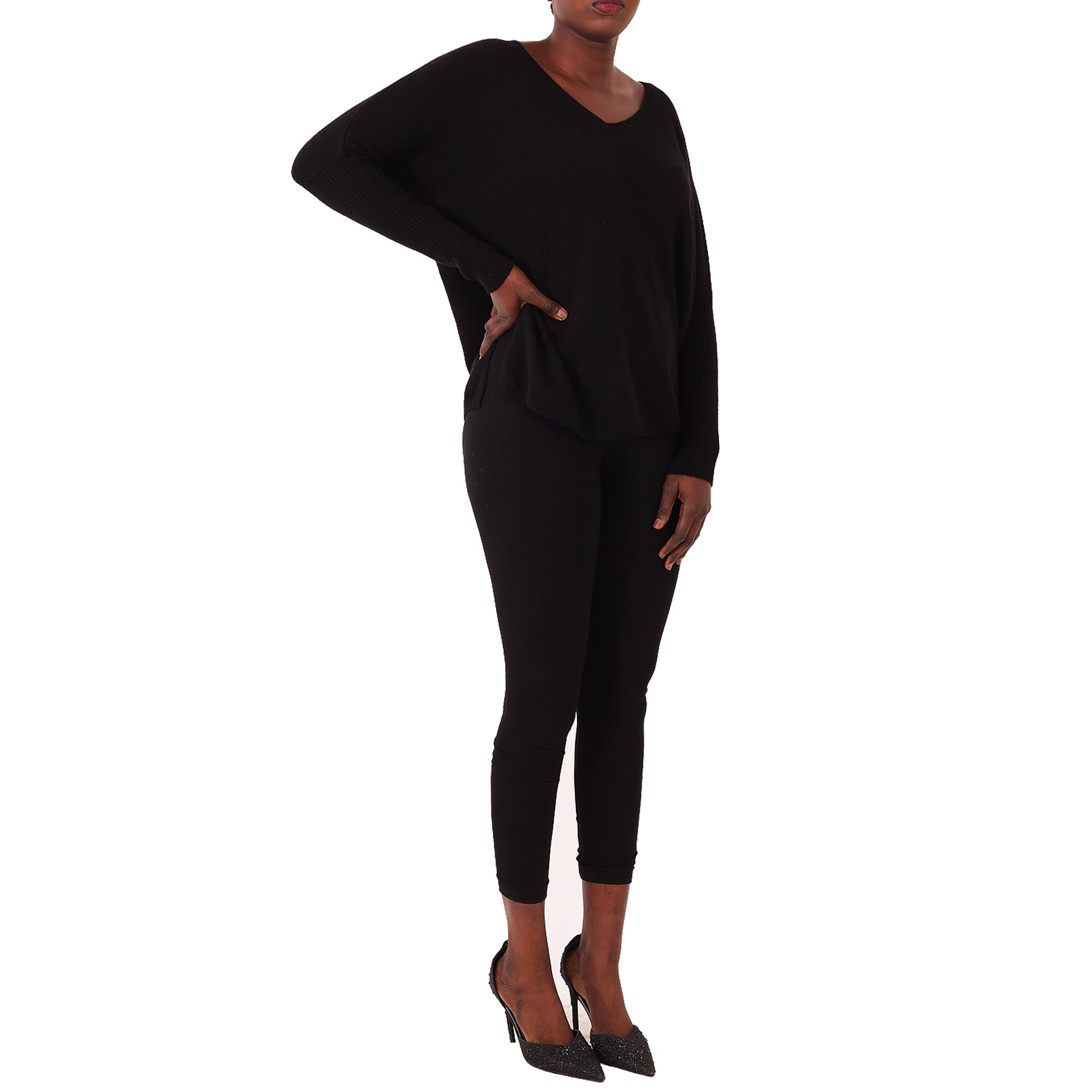 Maglia Notshy, nera, con scollo a v, in cashmere