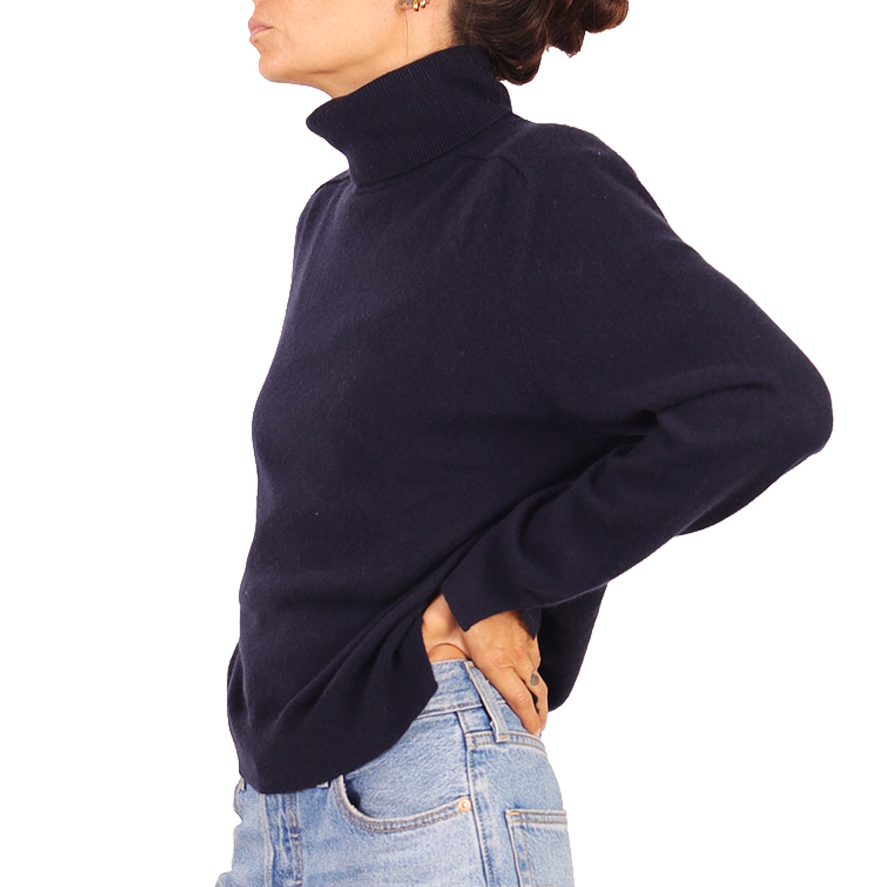 Maglia Notshy, a collo alto, blu, in cashmere, a maniche lunghe