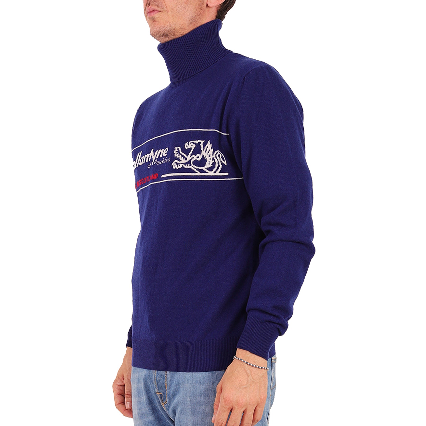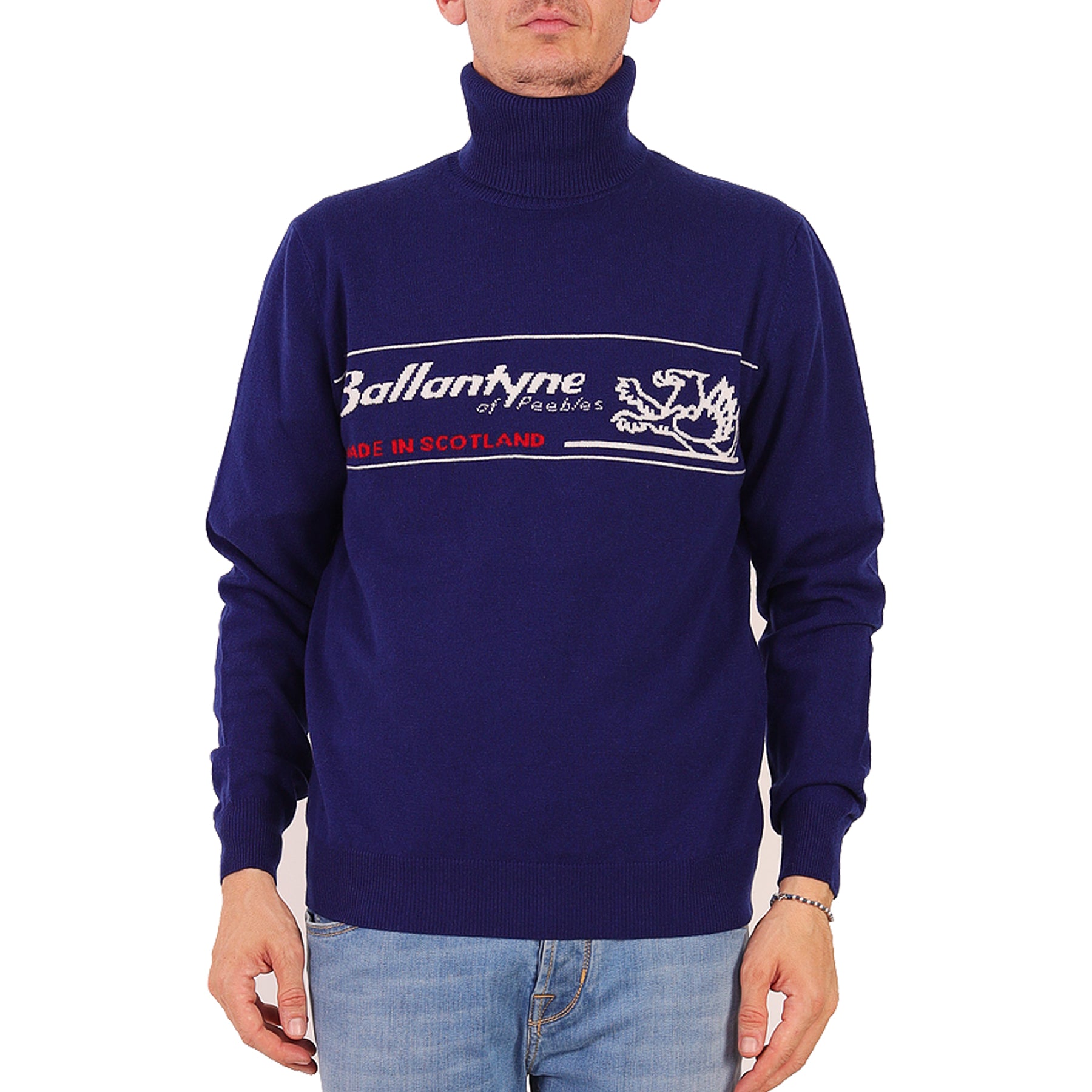 Maglia Ballantyne, a collo alto, blu, in cashmere, con logo davanti
