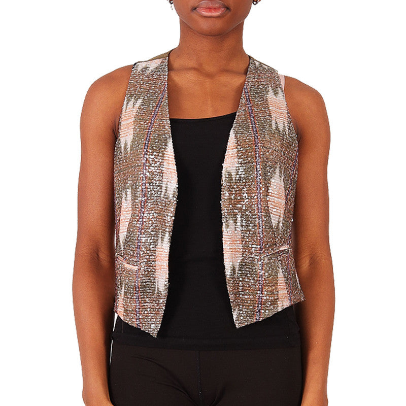 Gilet, Bazar Deluxe, a fantasia, verde, con inserti in paillettes davanti, chiusura con gancetto, tasche.