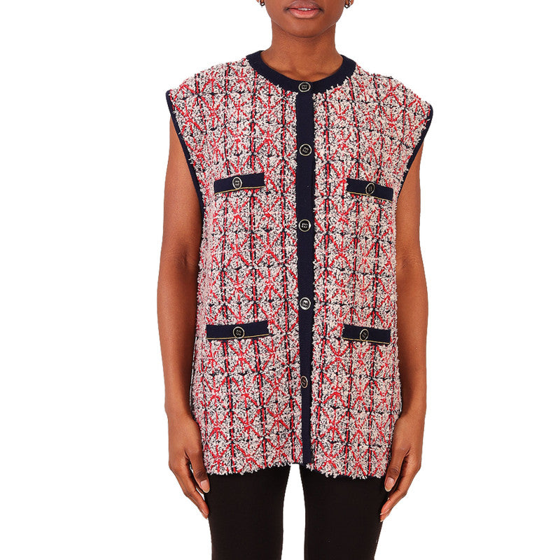 Gilet, Mes Demoiselles, in maglia jacquard, con bottoni, a girocollo, con tasche.