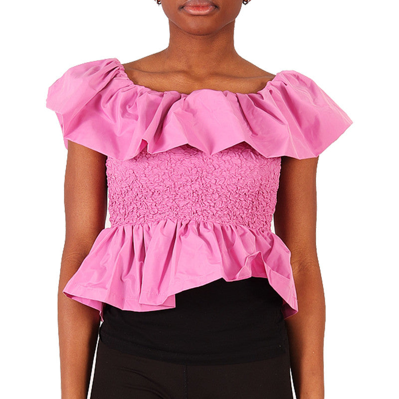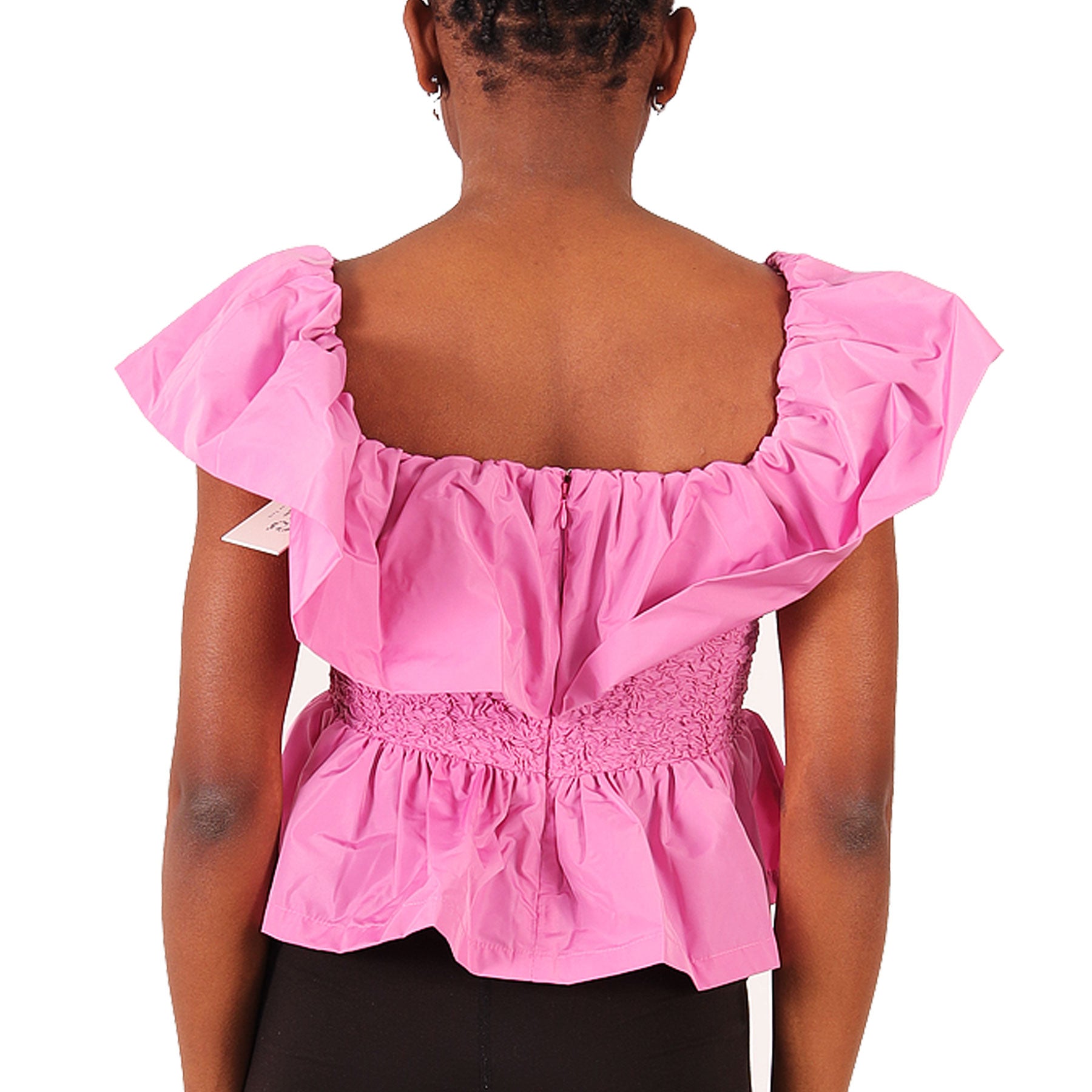 Top, Sea New York, rosa, scollo bardot, con balza, corpetto elastico.
