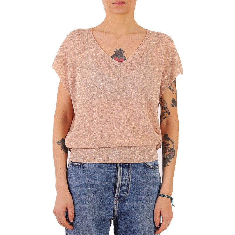 Maglia, Momoni, a maniche corte, con filo lurex, dorata, scollo a v.