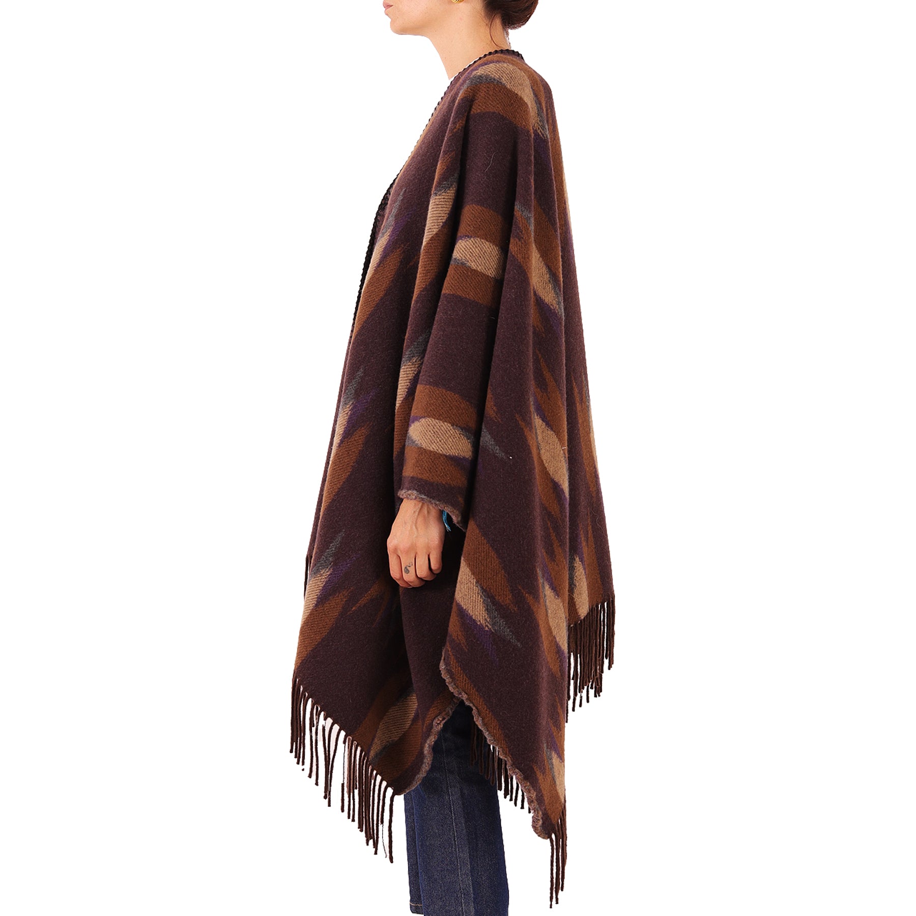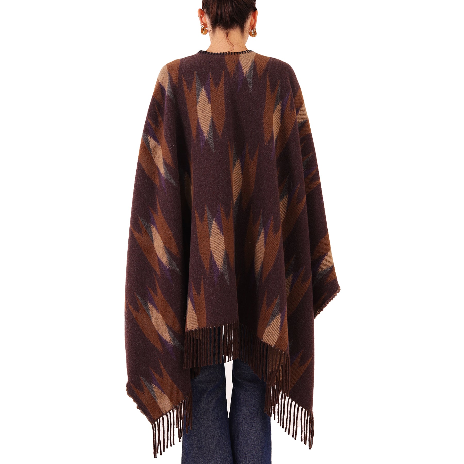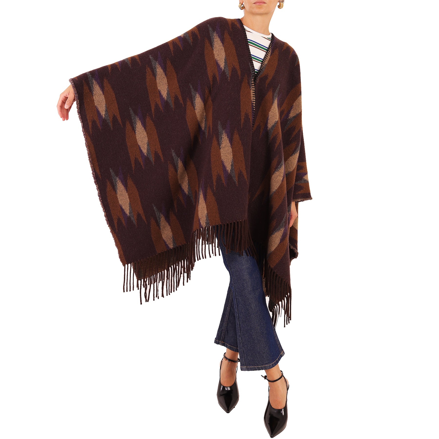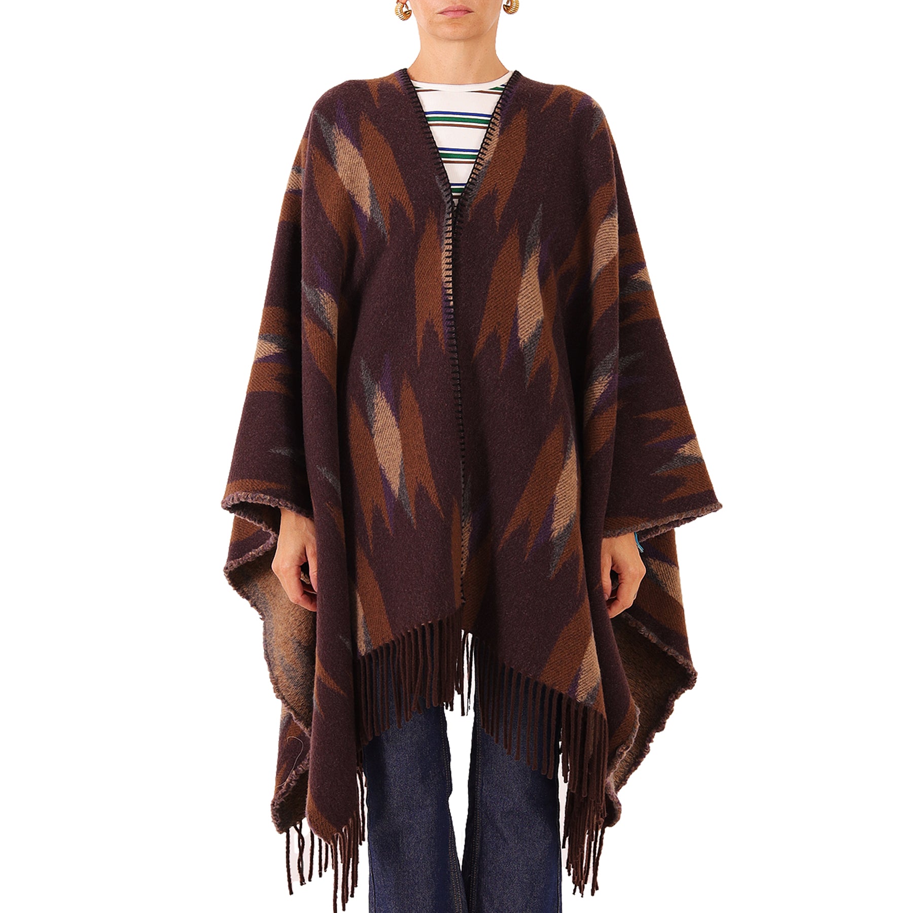Mantella Bazar Deluxe, a fantasia, marrone, chiusura con gancio, frange sul fondo, in misto lana