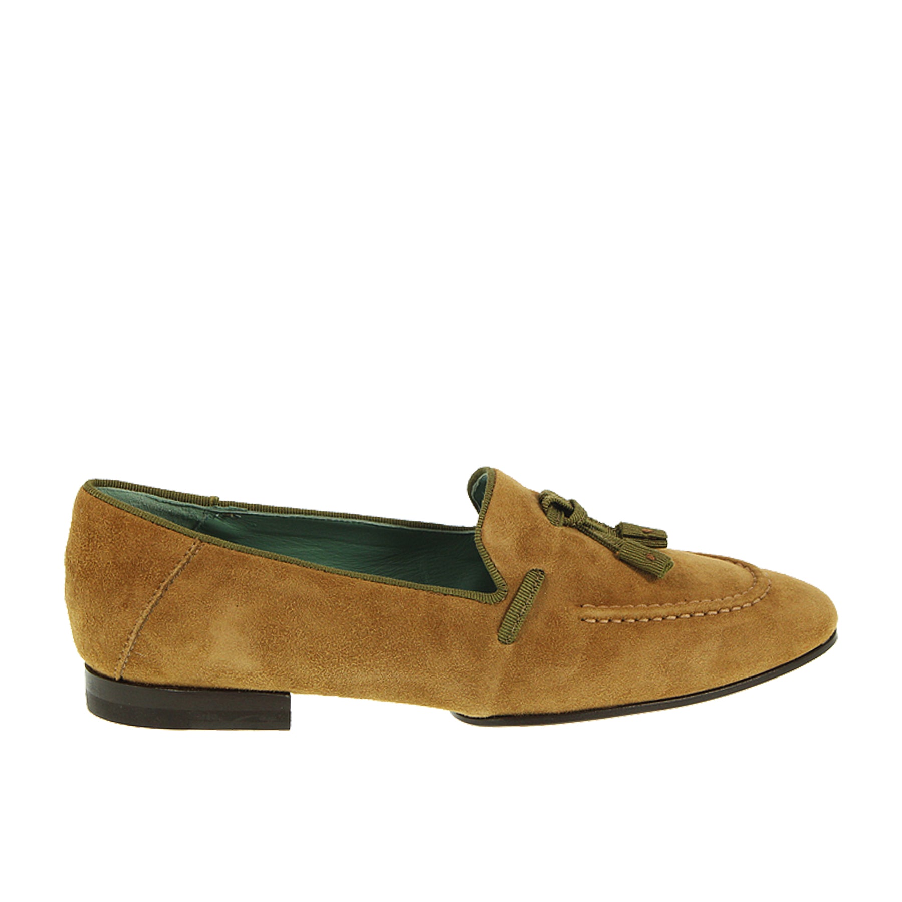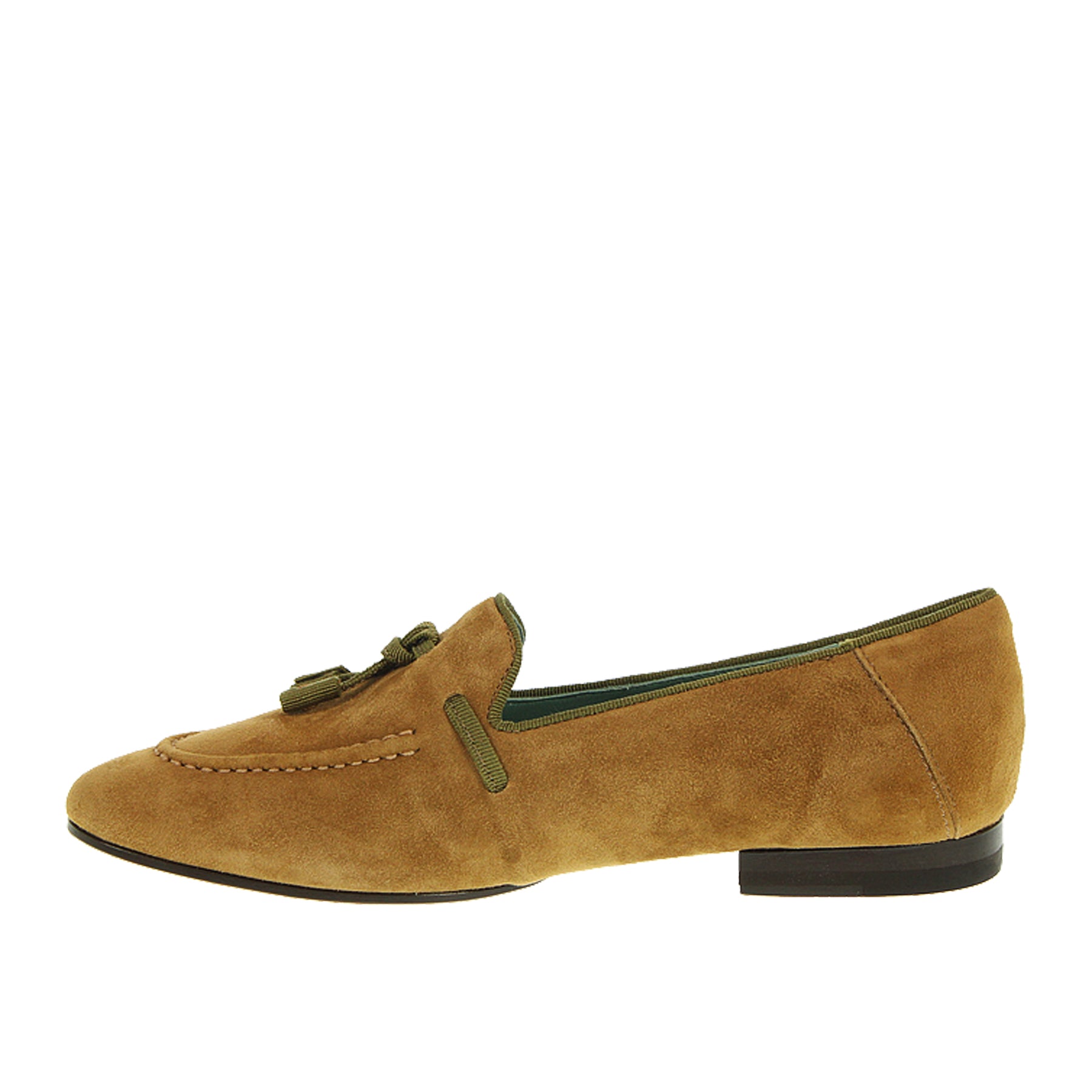 Mocassino Paola D'arcano, in camoscio, marrone, con nappine, con suola in cuoio