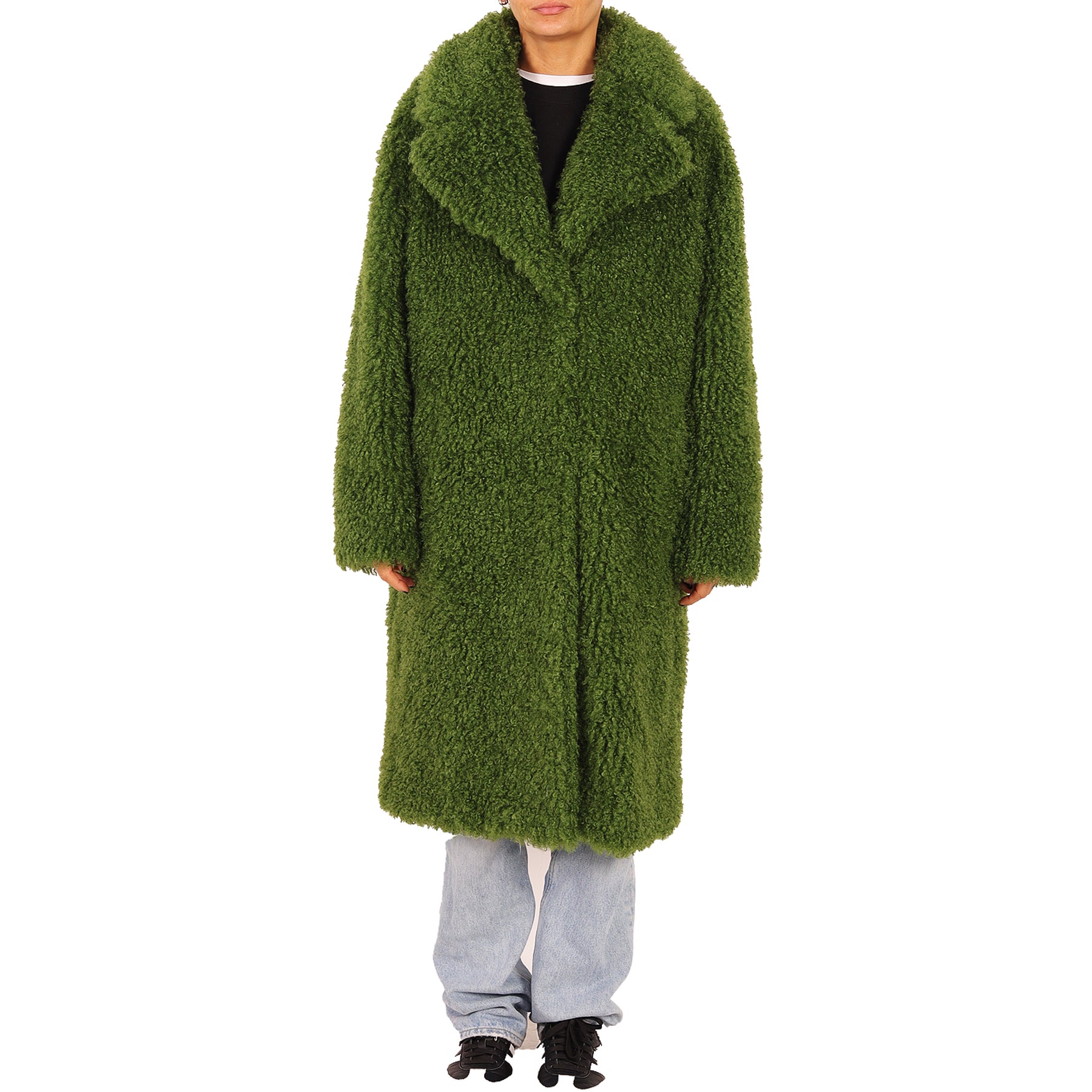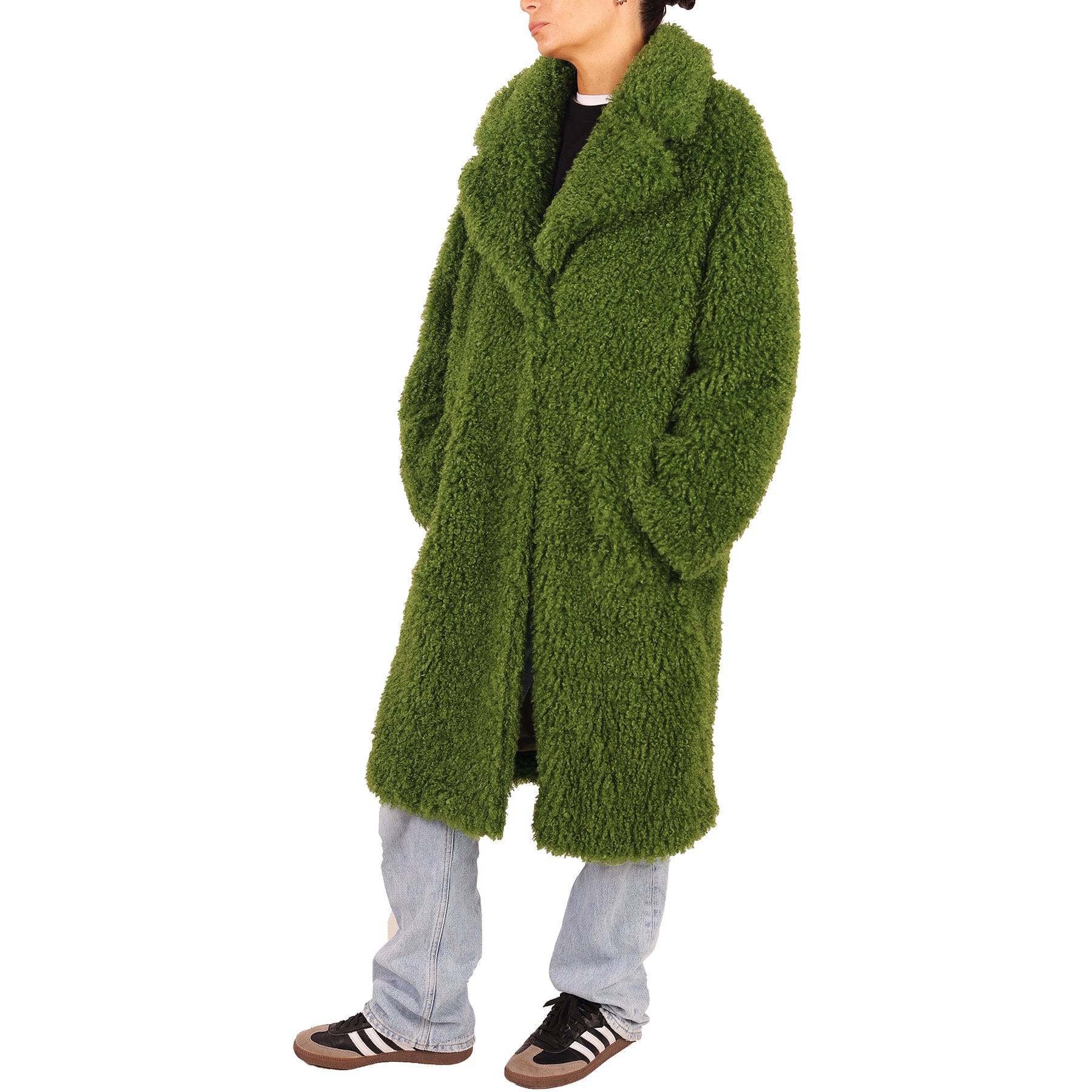 Pelliccia ecologica Mes Demoiselles, verde, con tasche, chiusura con ganci