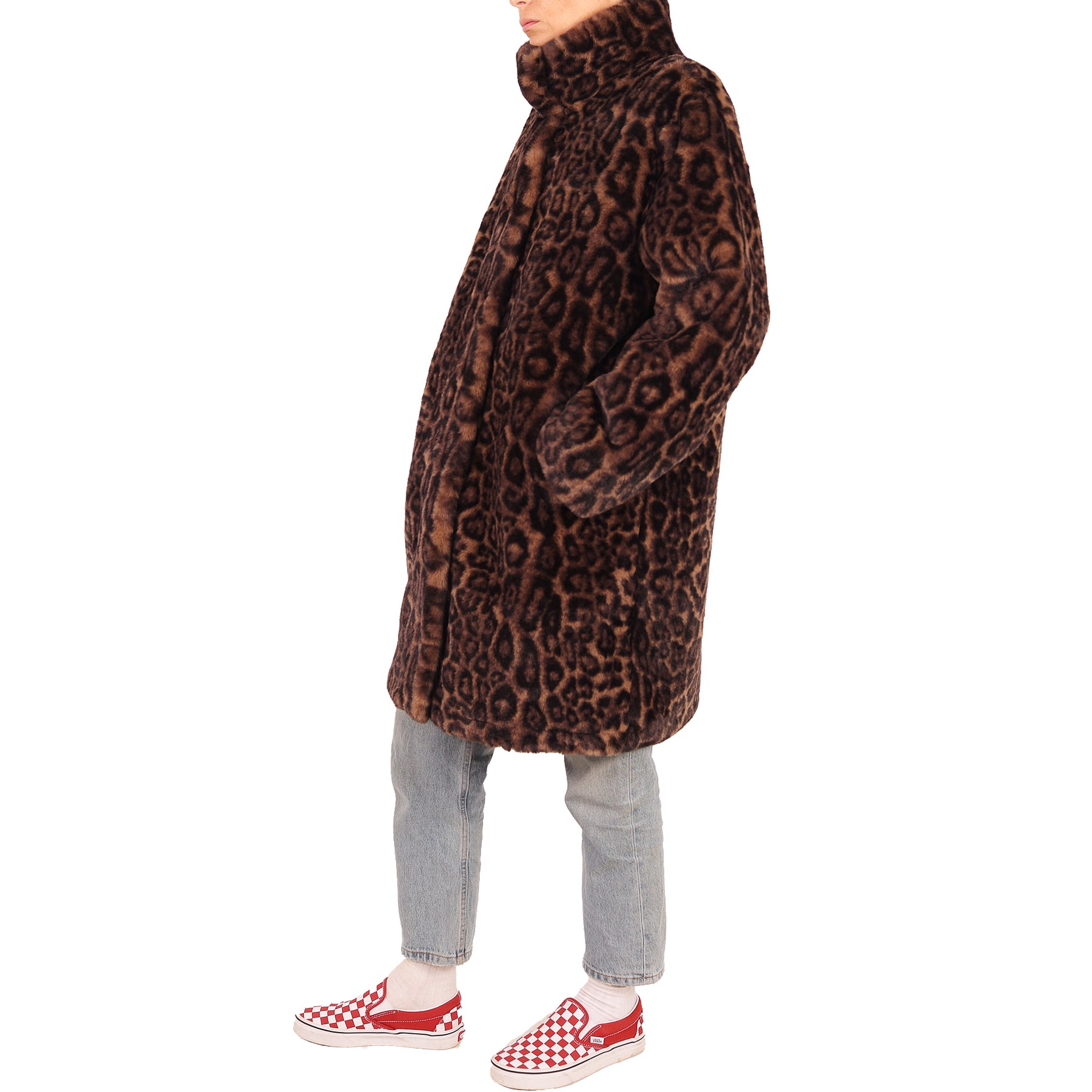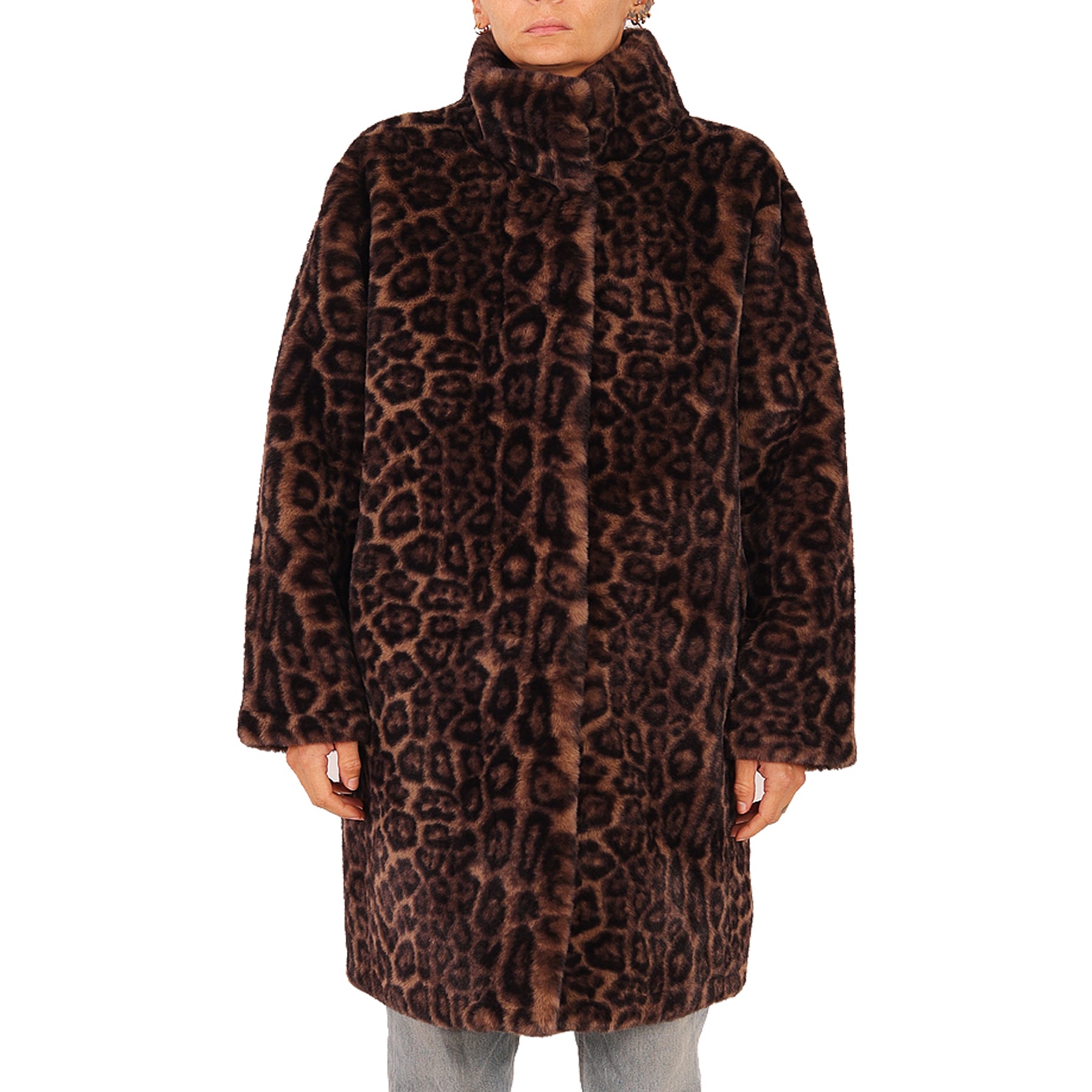 Pelliccia ecologica Apparis, lunga, animalier, chiusura con bottoni, con tasche