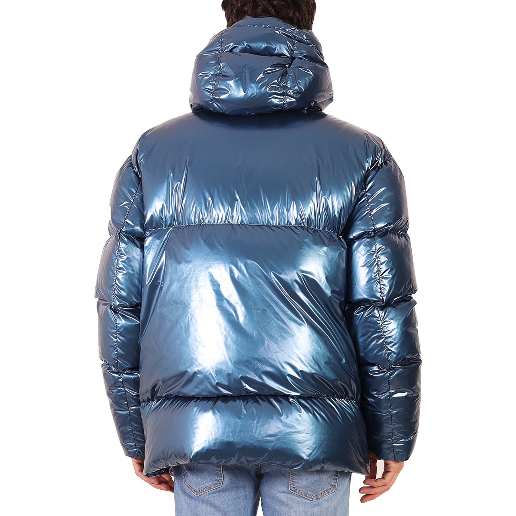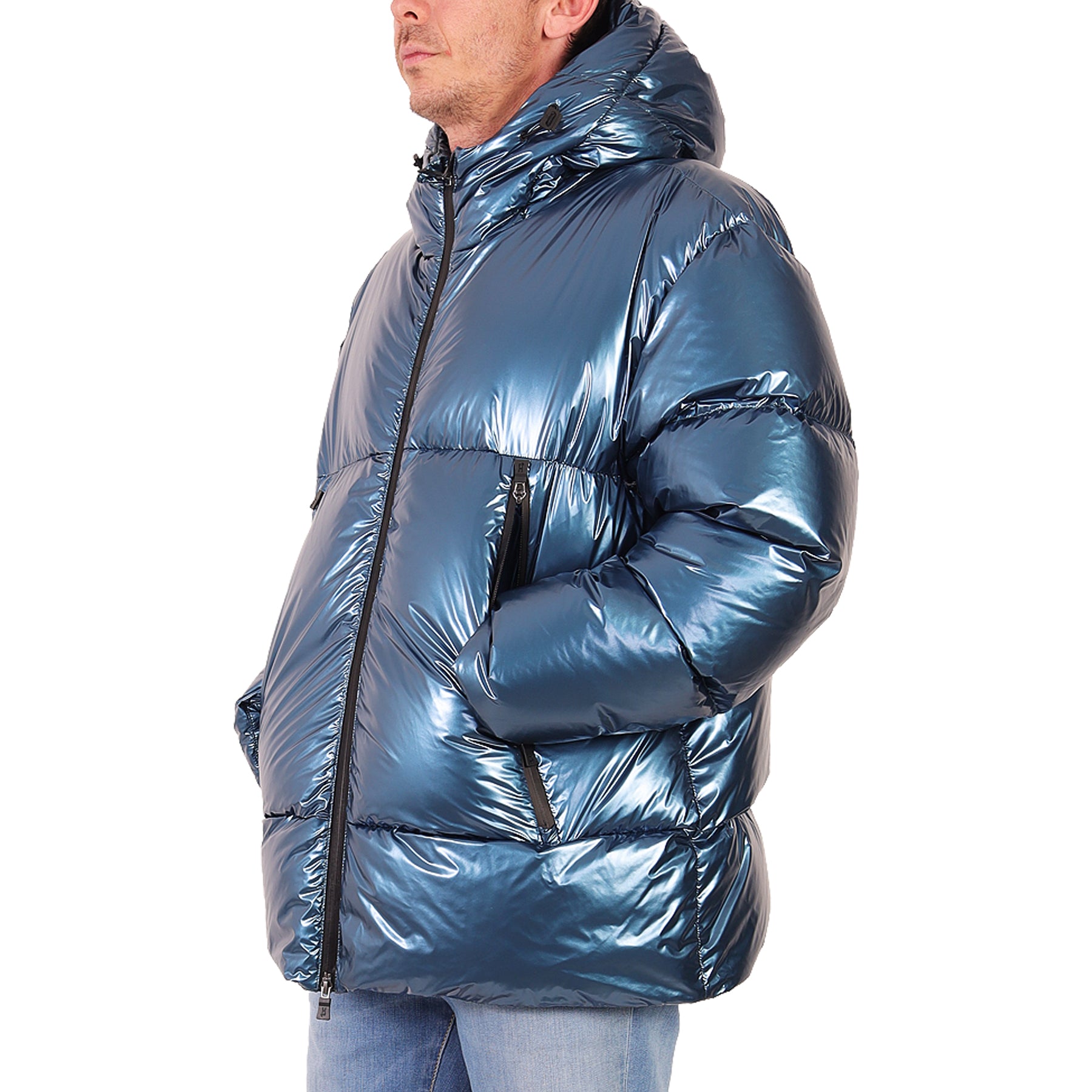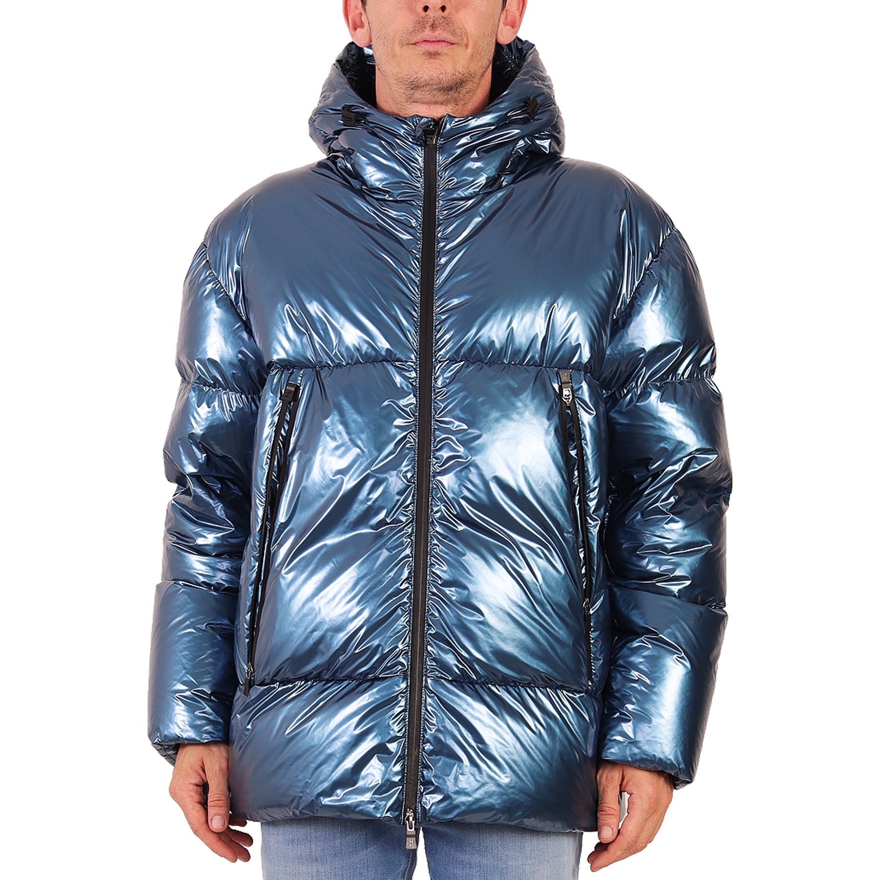 Piumino Herno, blu metallizzato, con cappuccio, chiusura con zip, con tasche