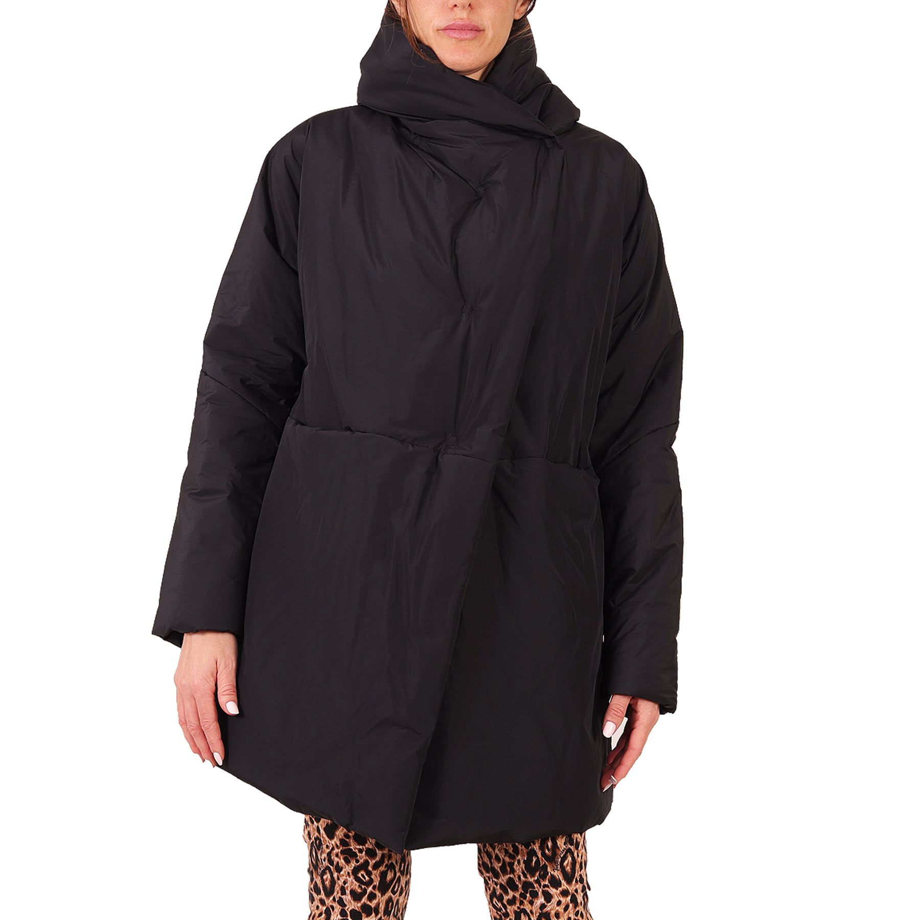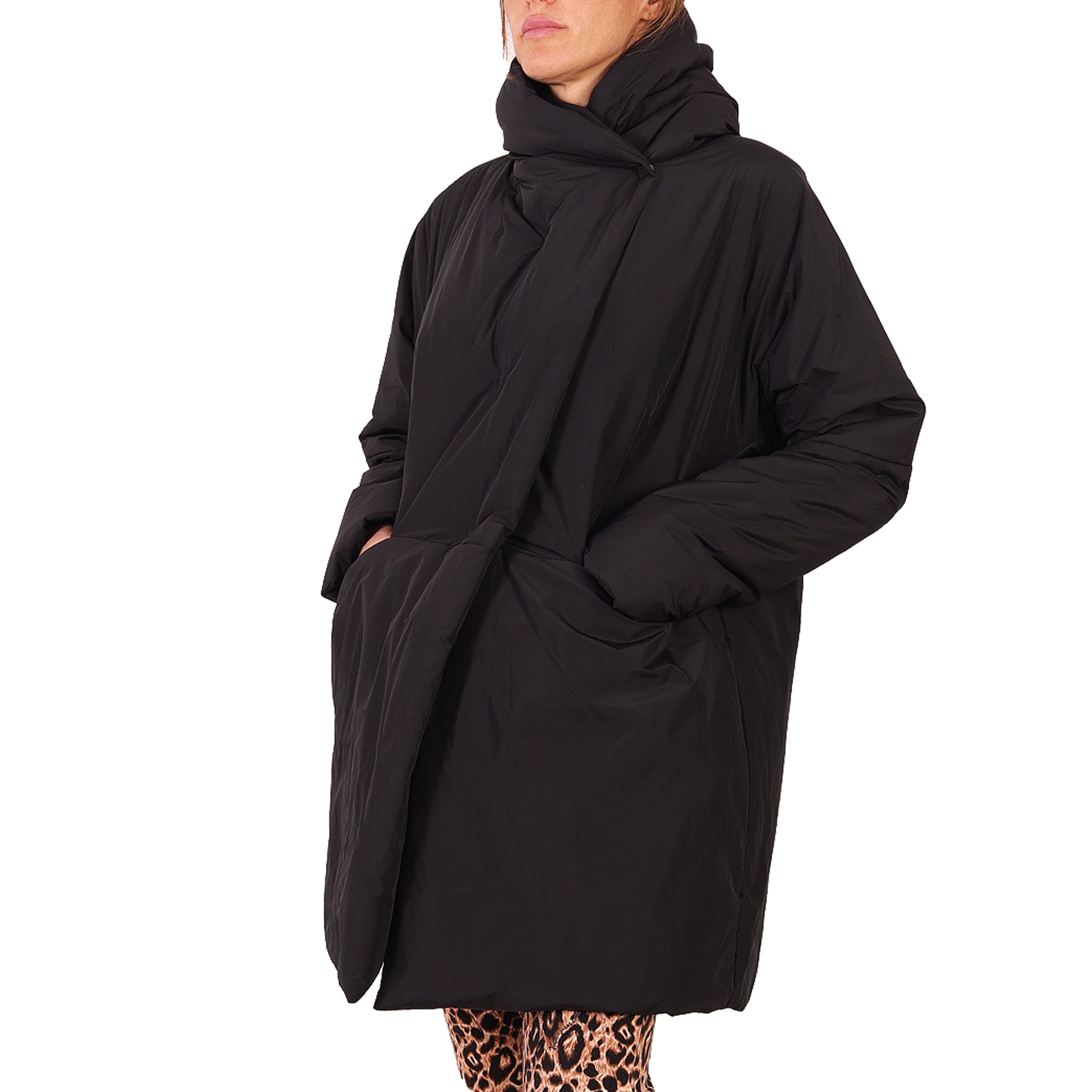 Piumino Shu Moriyama, nero, con cappuccio, chiusura con bottoni a scomparsa, con tasche