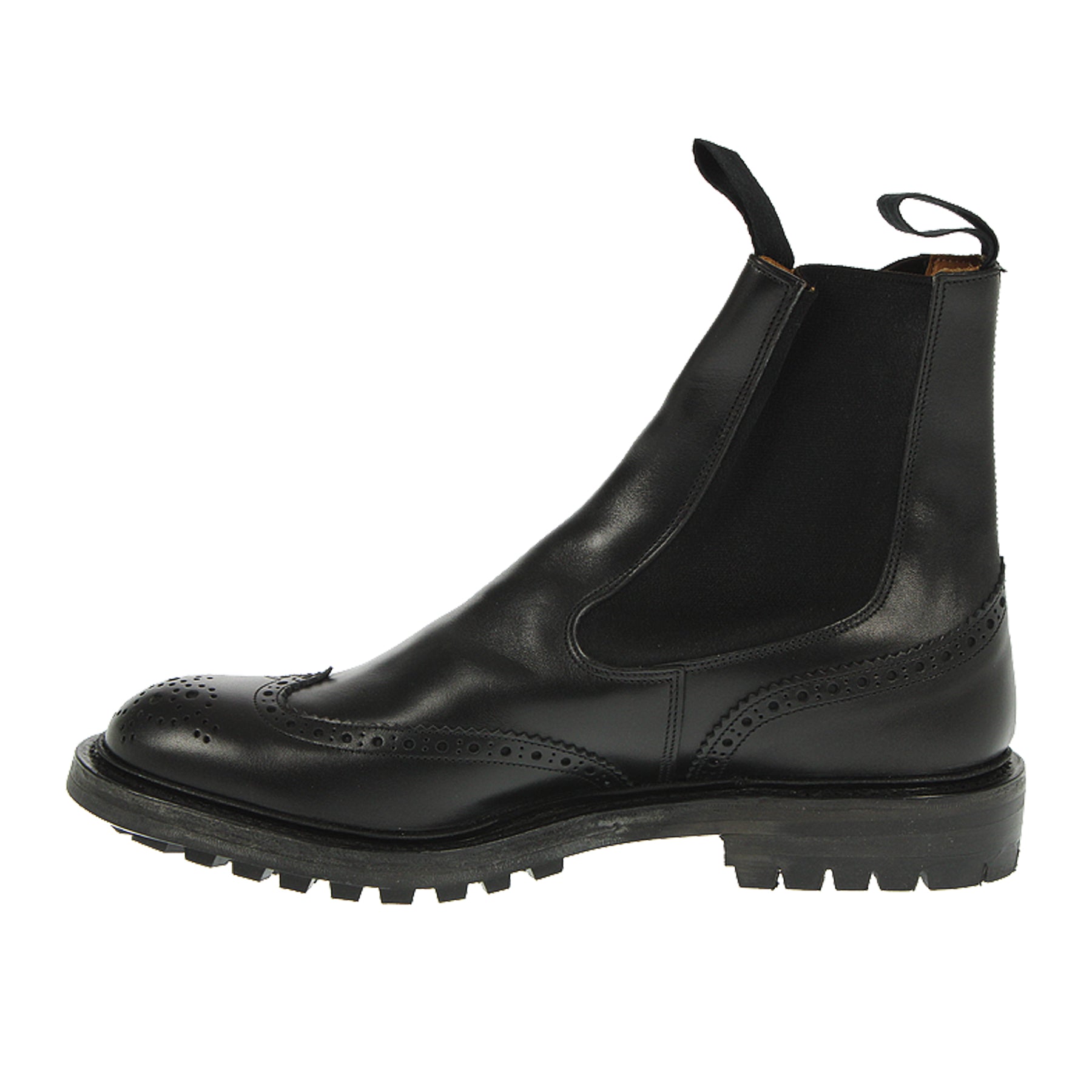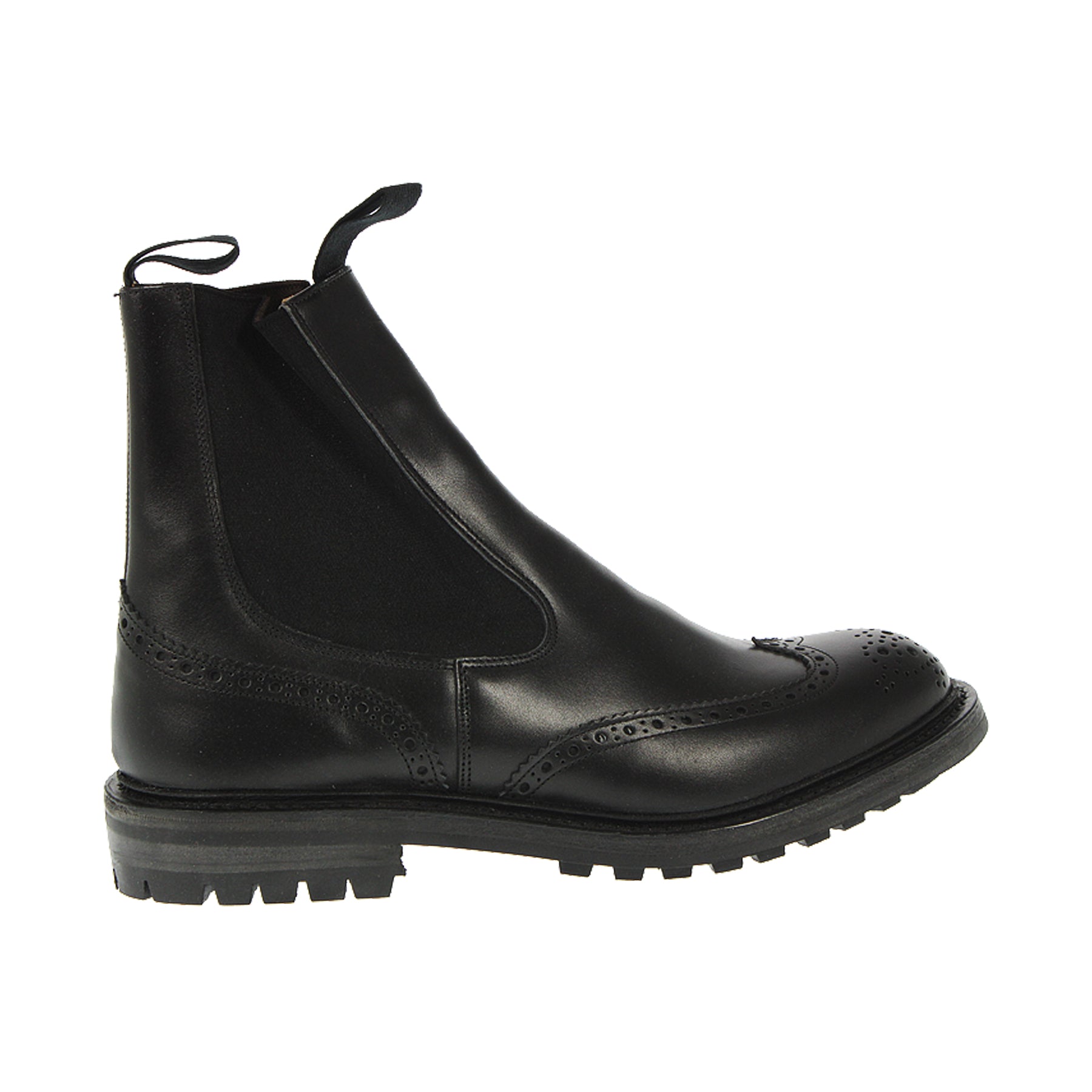 Polacchino Tricker's, in pelle nera, con bande elastiche laterali, suola in gomma