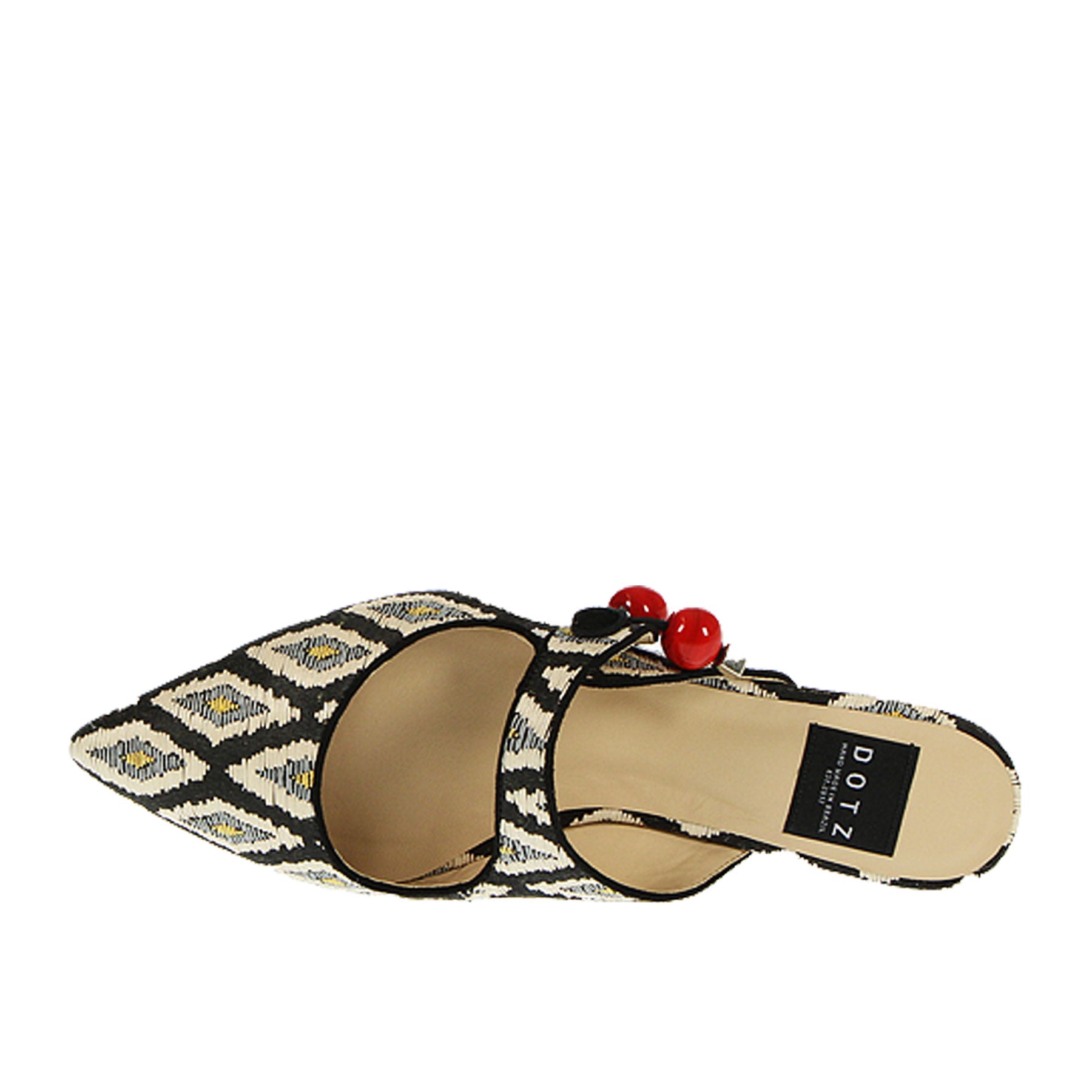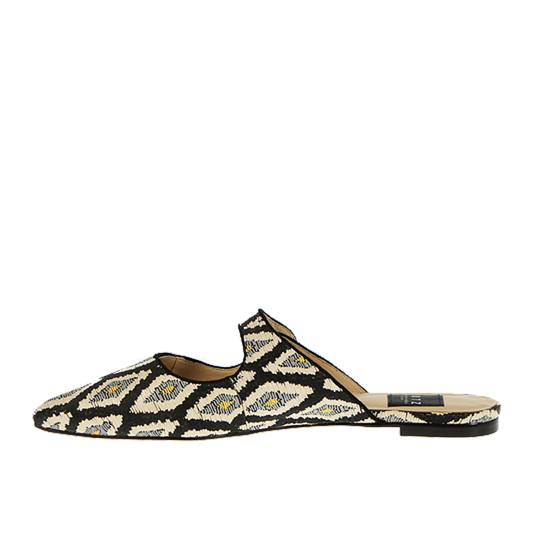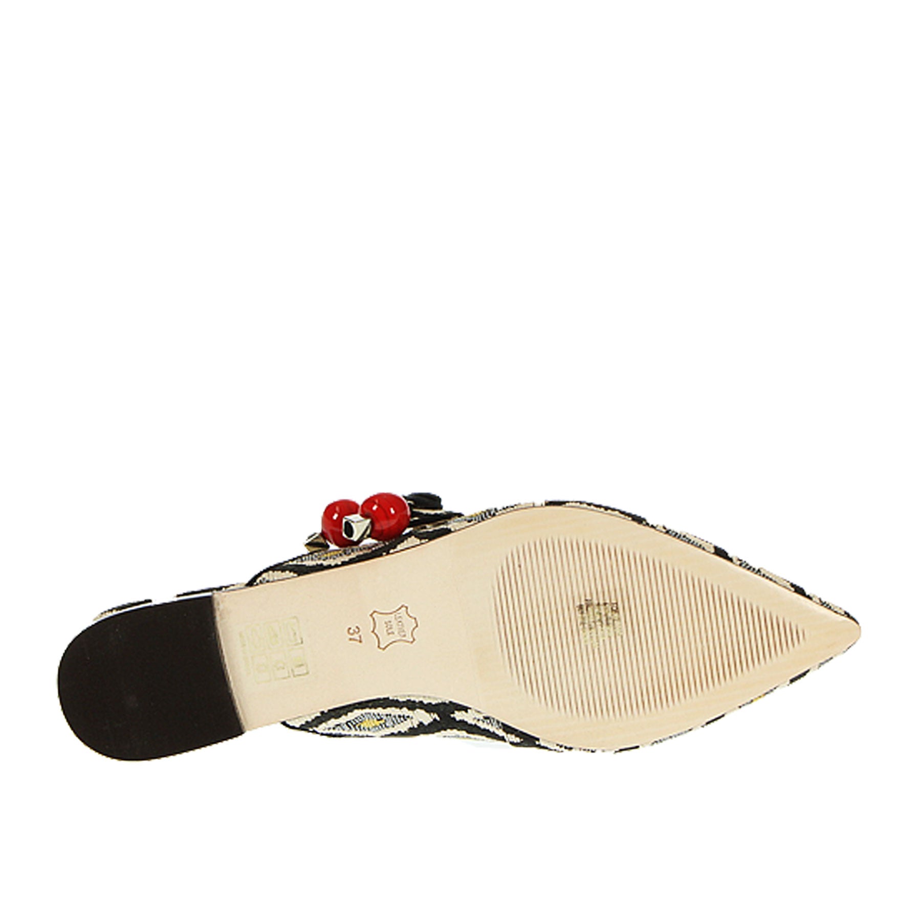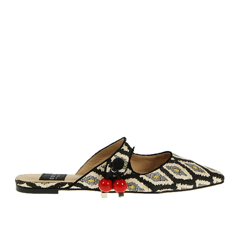 Sandalo, Dotz, a fantasia, nero bianco e grigio, a punta, con apertura, con charm applicato, suola in cuoio, fatte a mano.