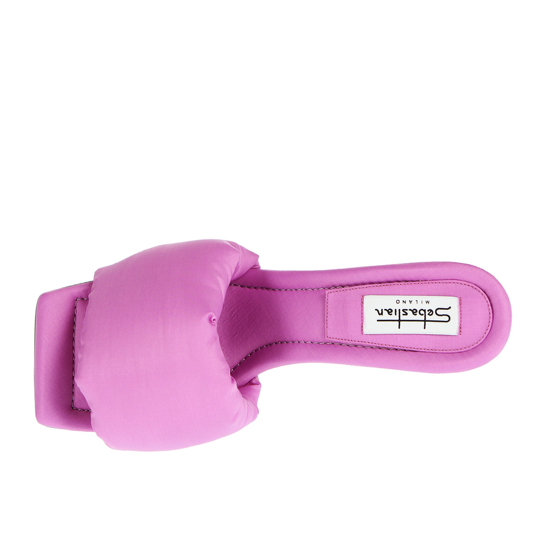 Sandalo Sebastian, con fascia imbottita, in tessuto, tacco 10 cm.