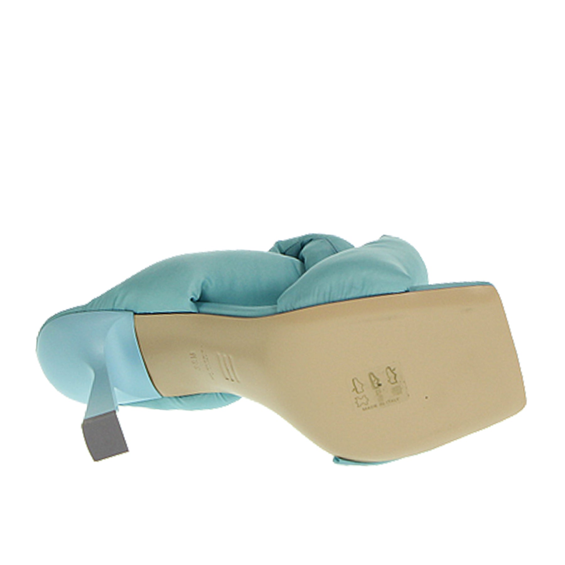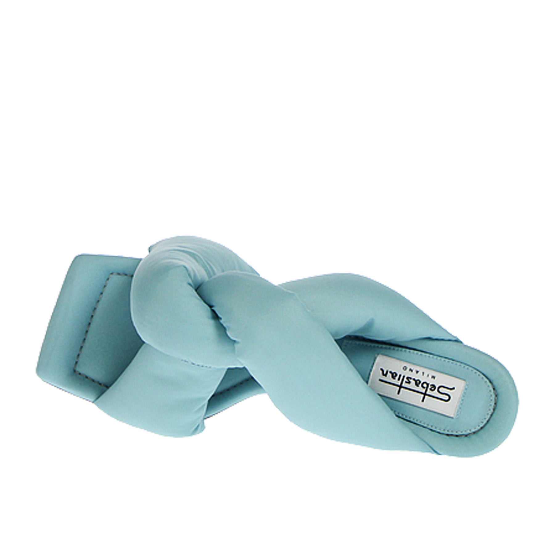 Sandalo Sebastian, azzurro, fascia intrecciata e imbottita, tacco 10,5 cm.