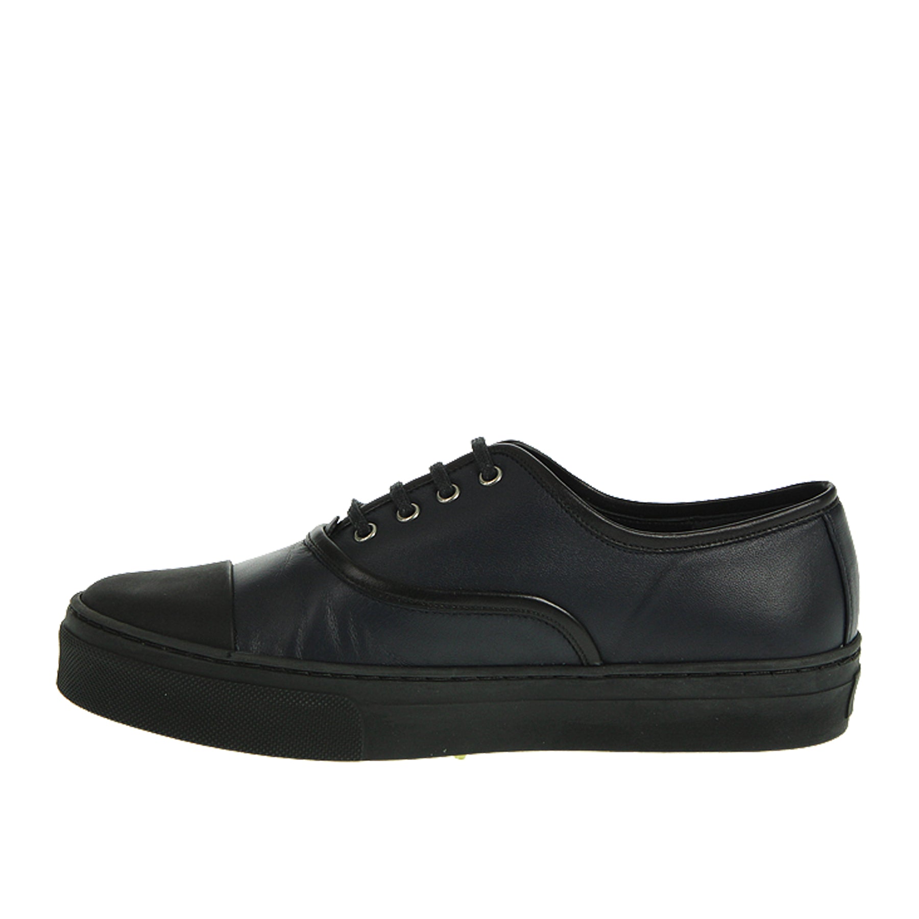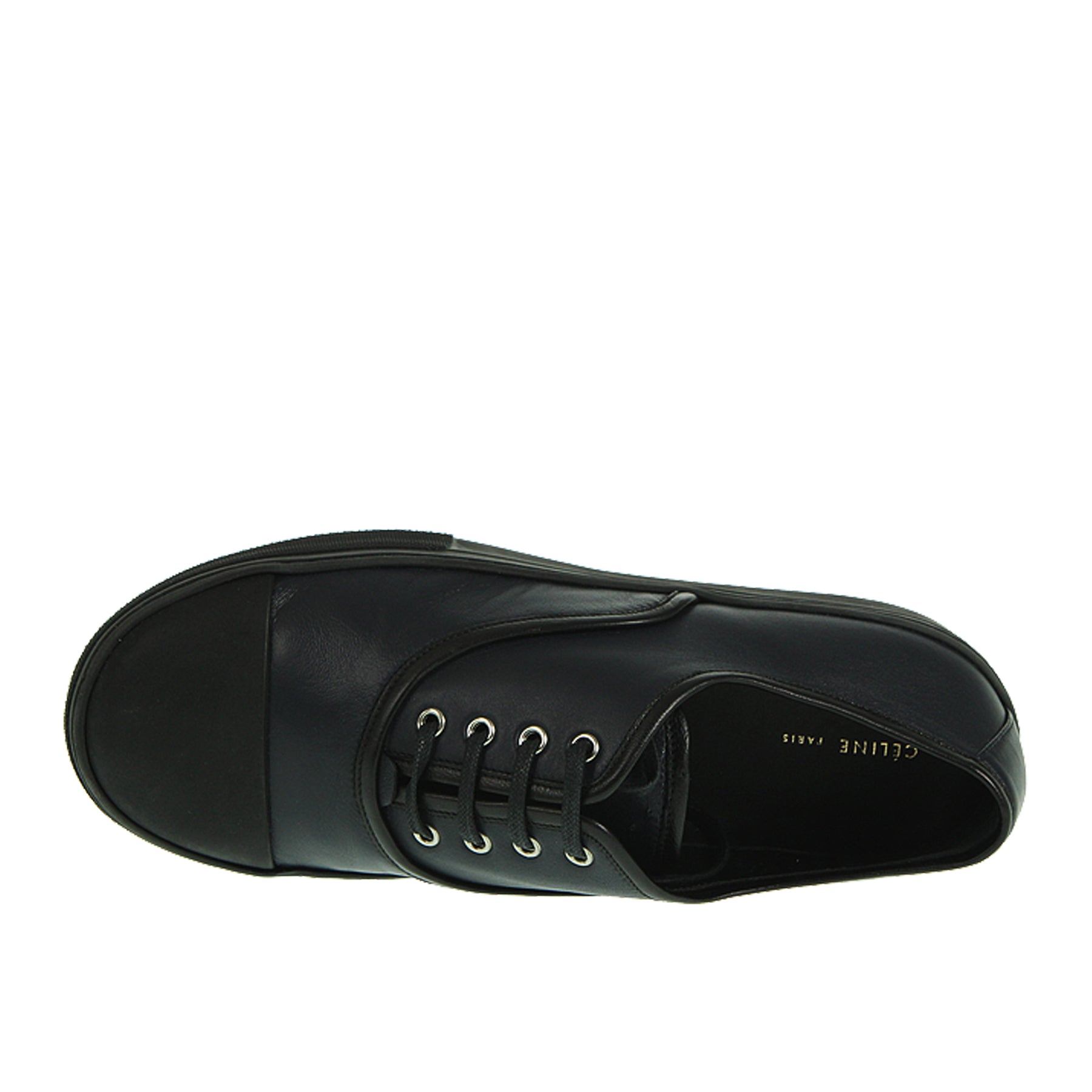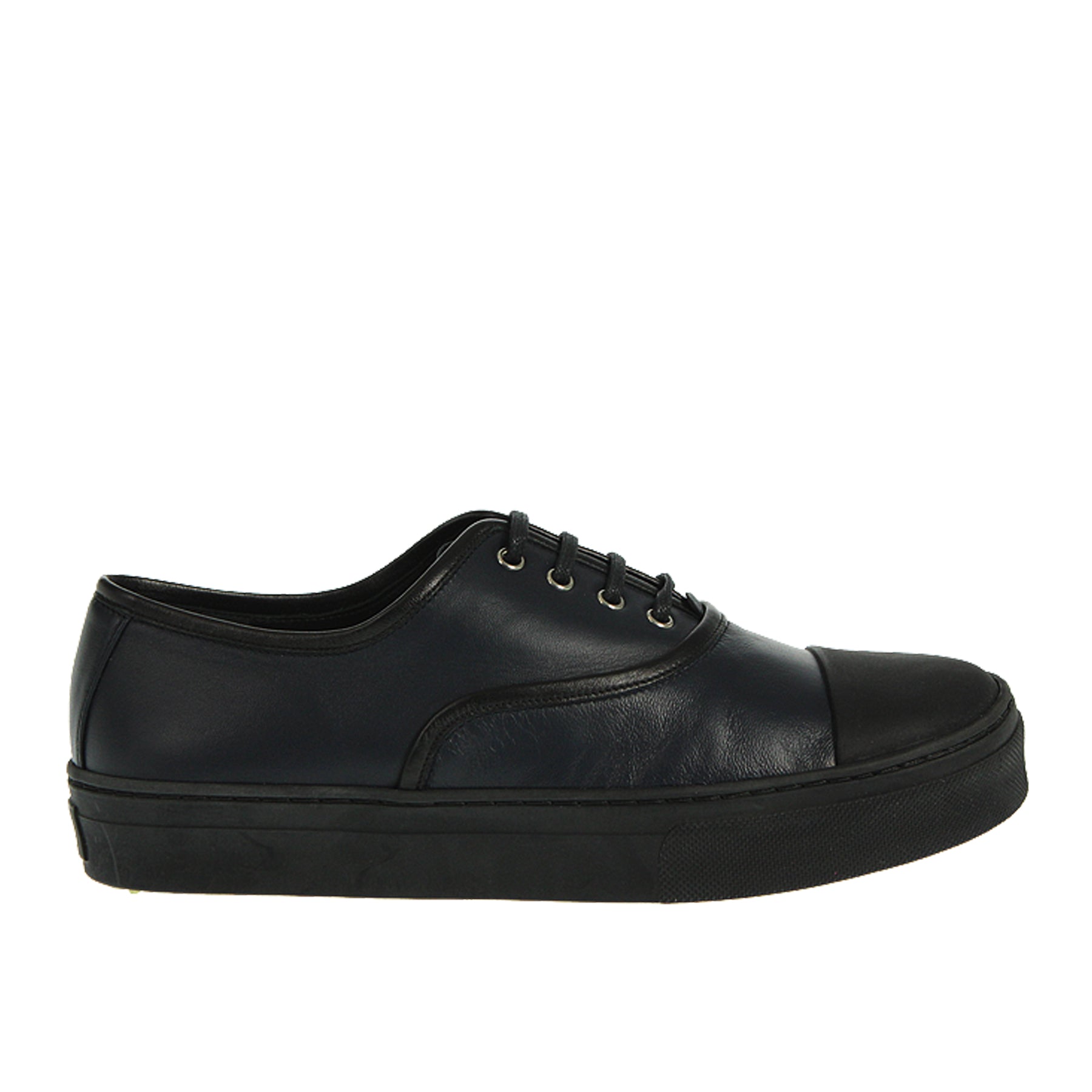Sneakers Celine, in pelle, colore blu, con punta in gomma nera, con lacci, suola in gomma