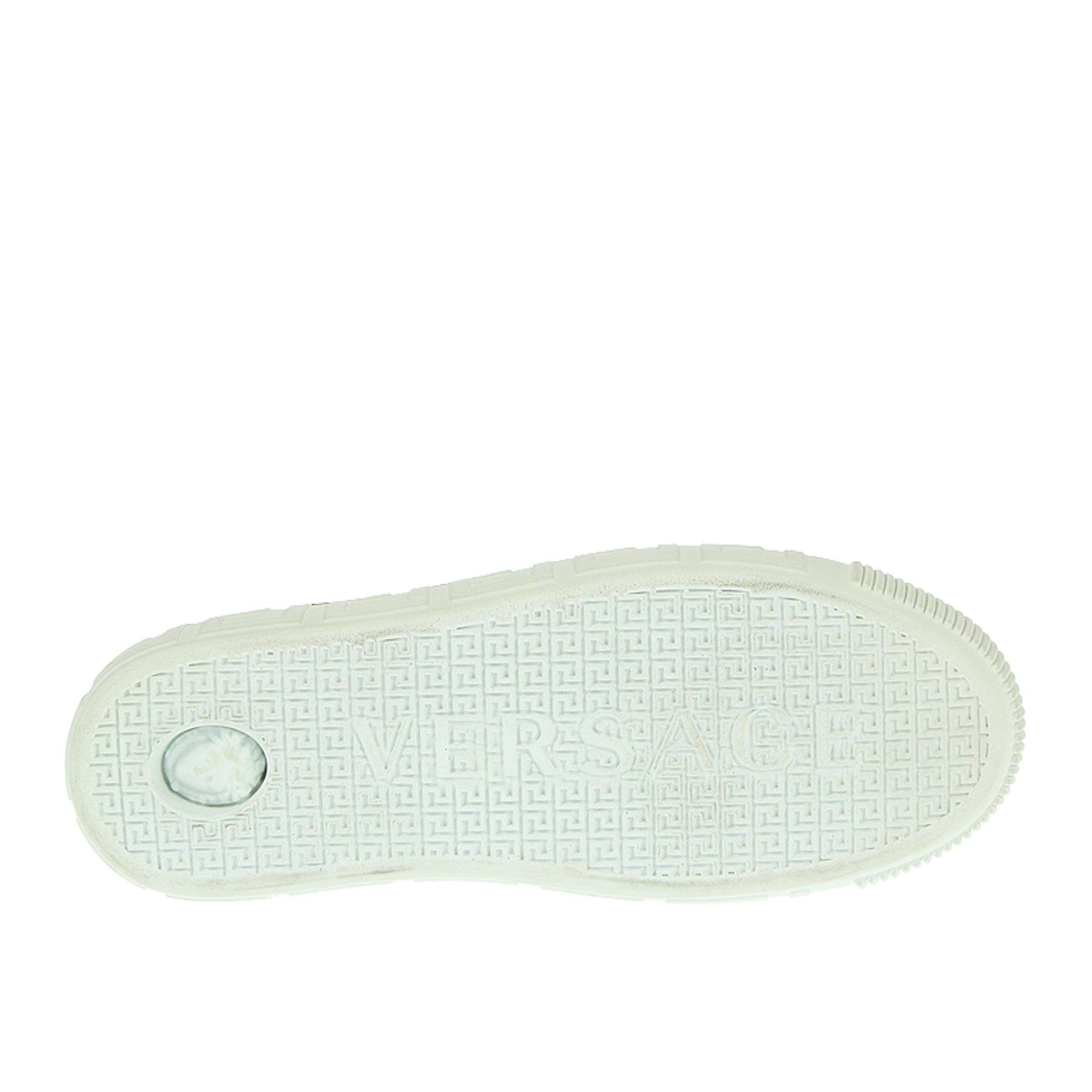 Sneakers Versace, in pelle, colore bianco, scritta laterale, chiusura con lacci, punta tonda, suola in gomma