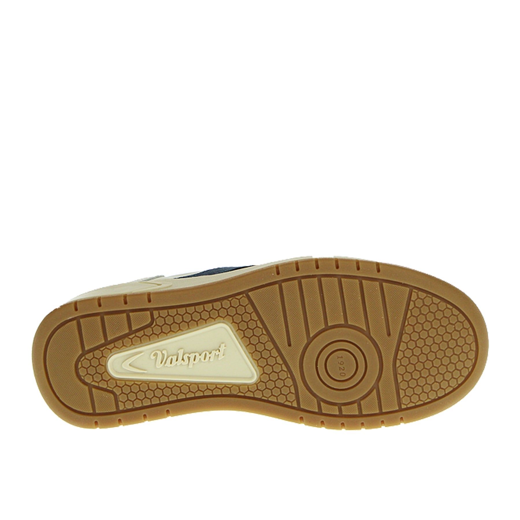 Sneakers Valsport, in pelle, colore bianco, con inserto laterale in camoscio blu, suola in gomma