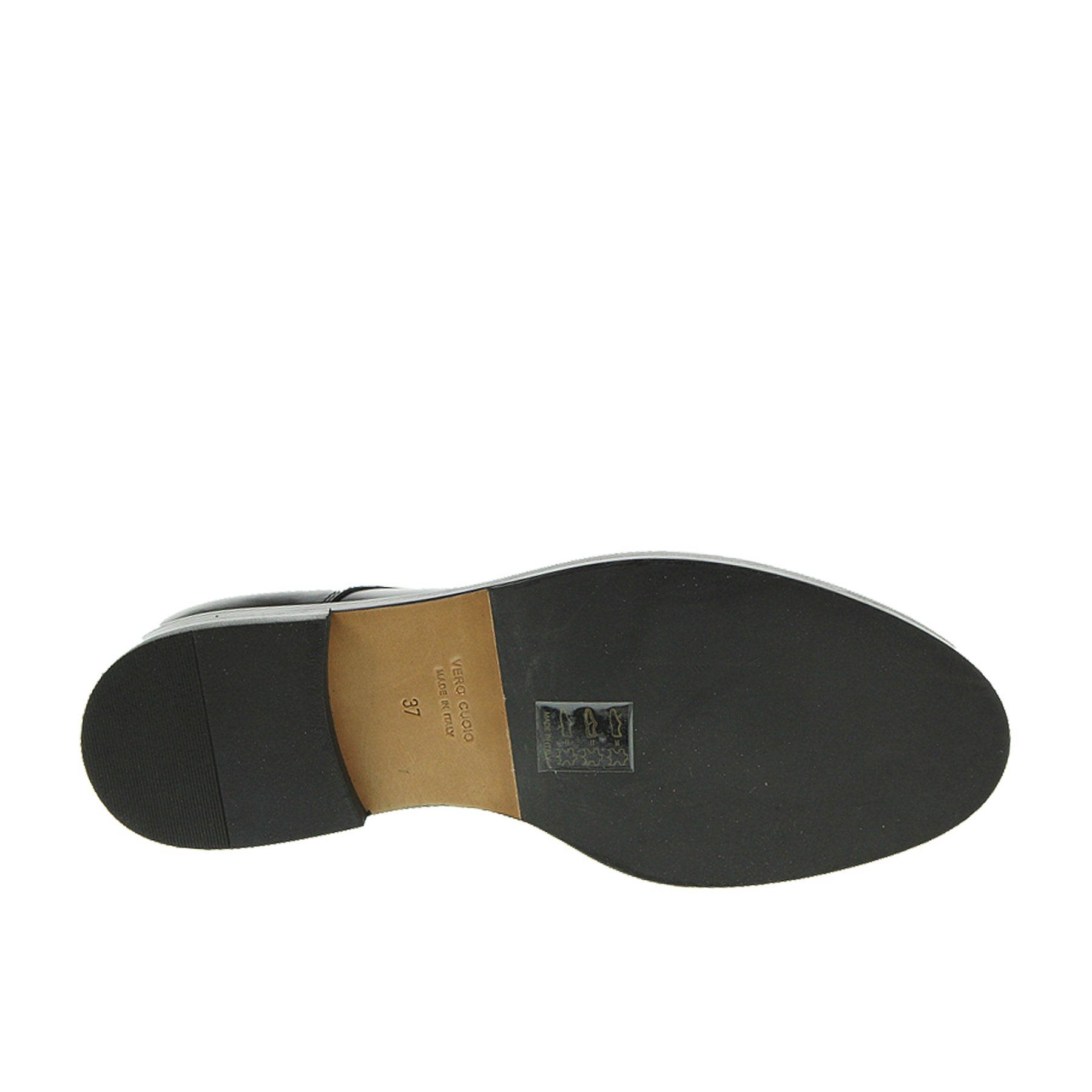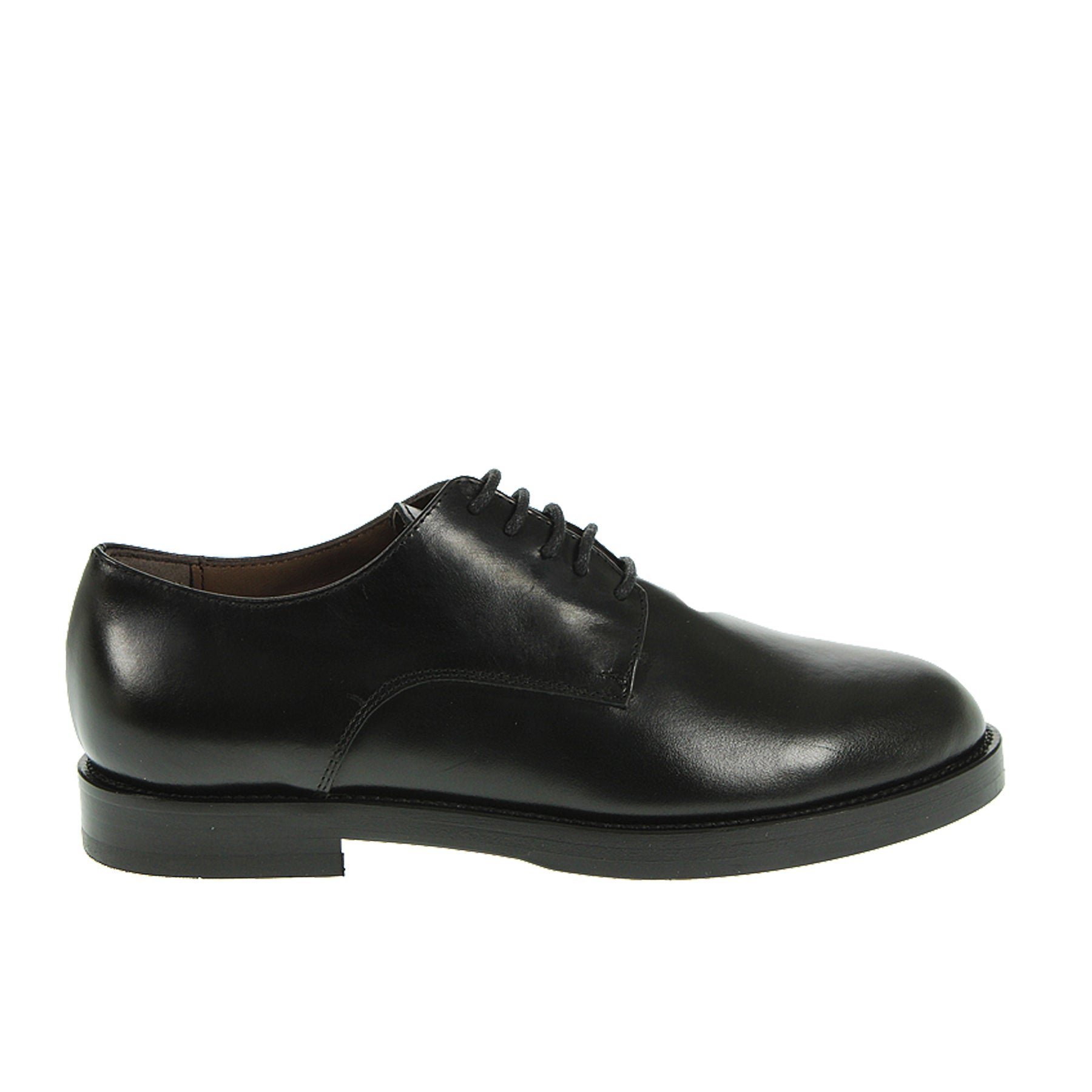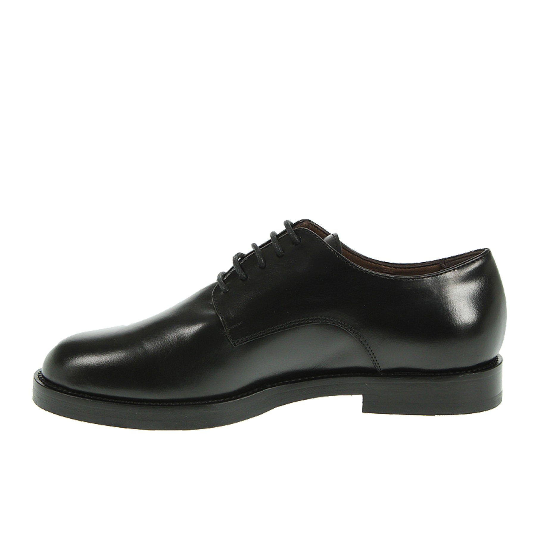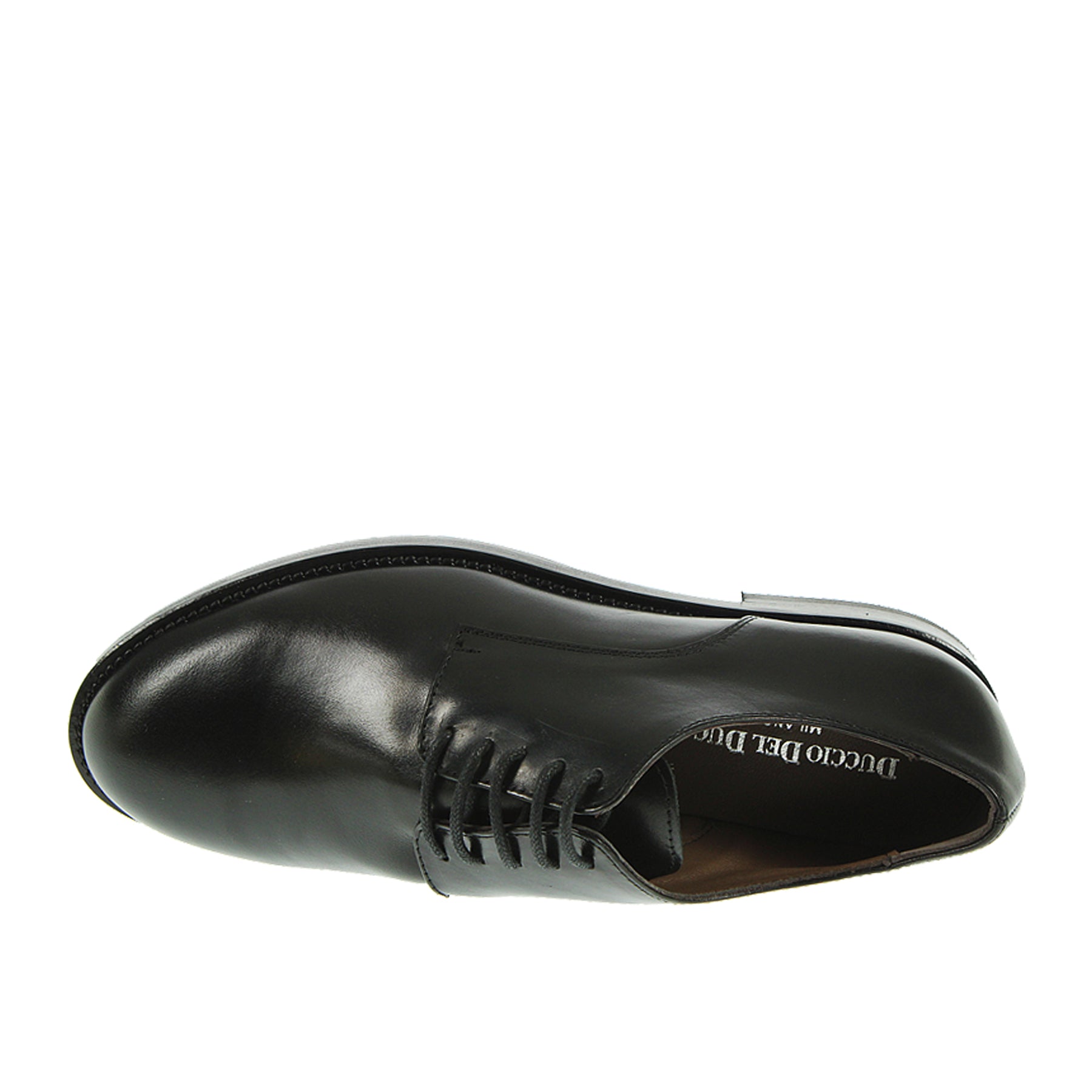 Stringata Duccio Del Duca, in pelle, nera, con lacci, con suola in cuoio
