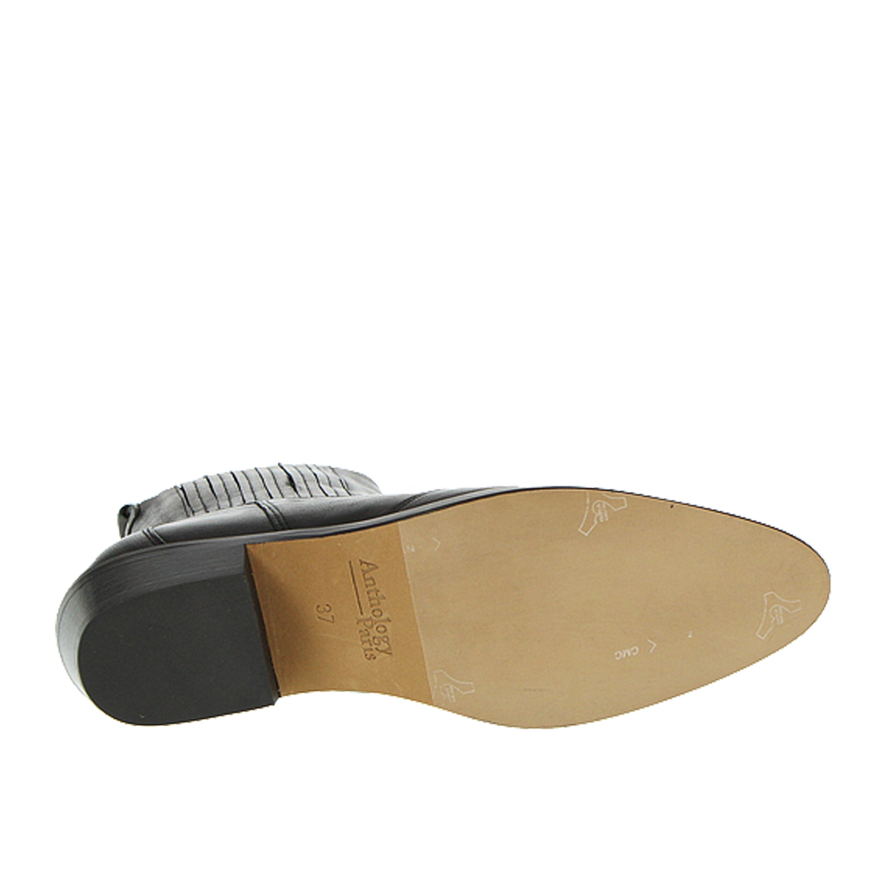 Tronchetto Anthology Paris, in pelle, nero, con impunture, fasce elastiche laterali, suola in cuoio, tacco 3 cm