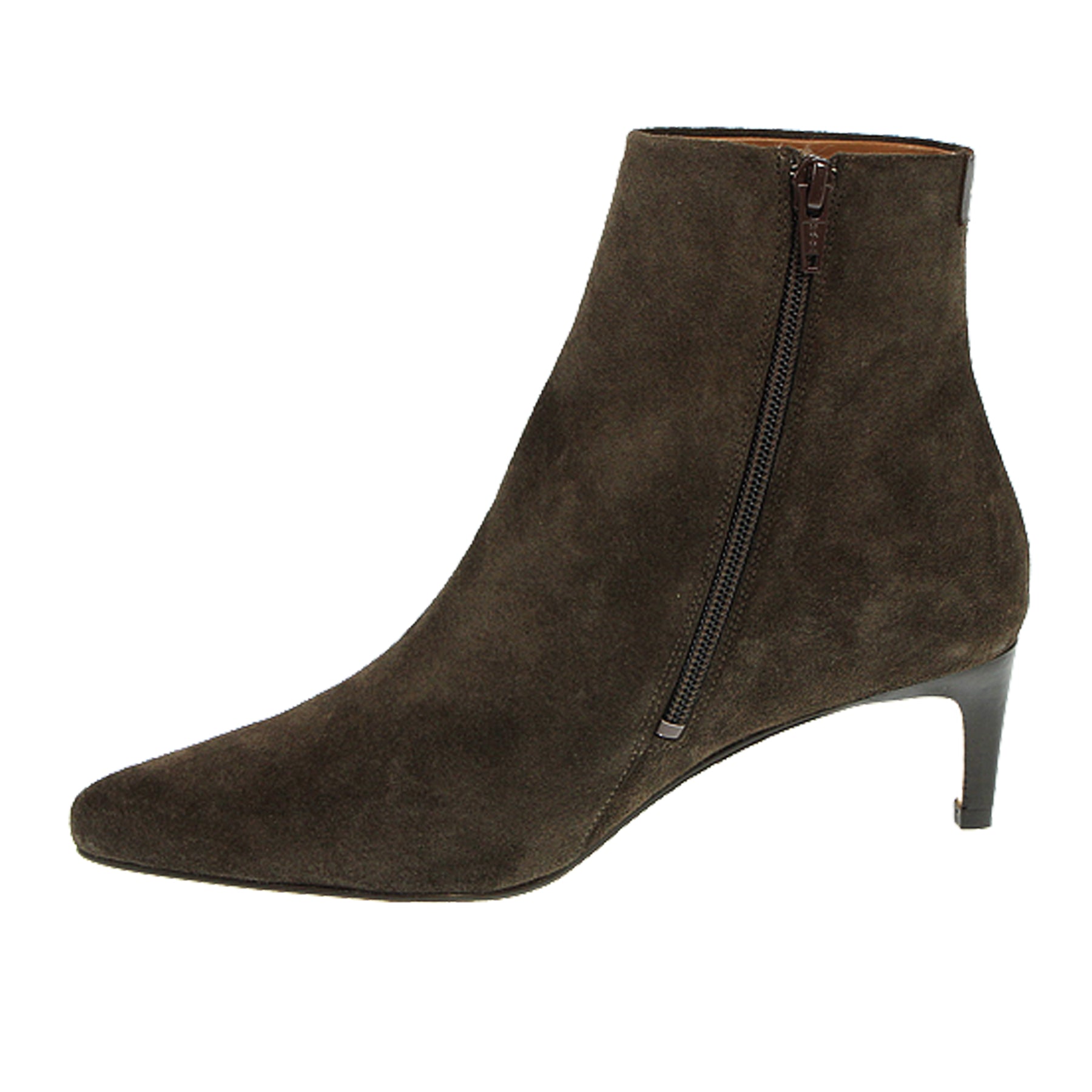 Tronchetto Anthology Paris, in camoscio, marrone, con zip laterale, suola in cuoio, tacco sottile 5 cm