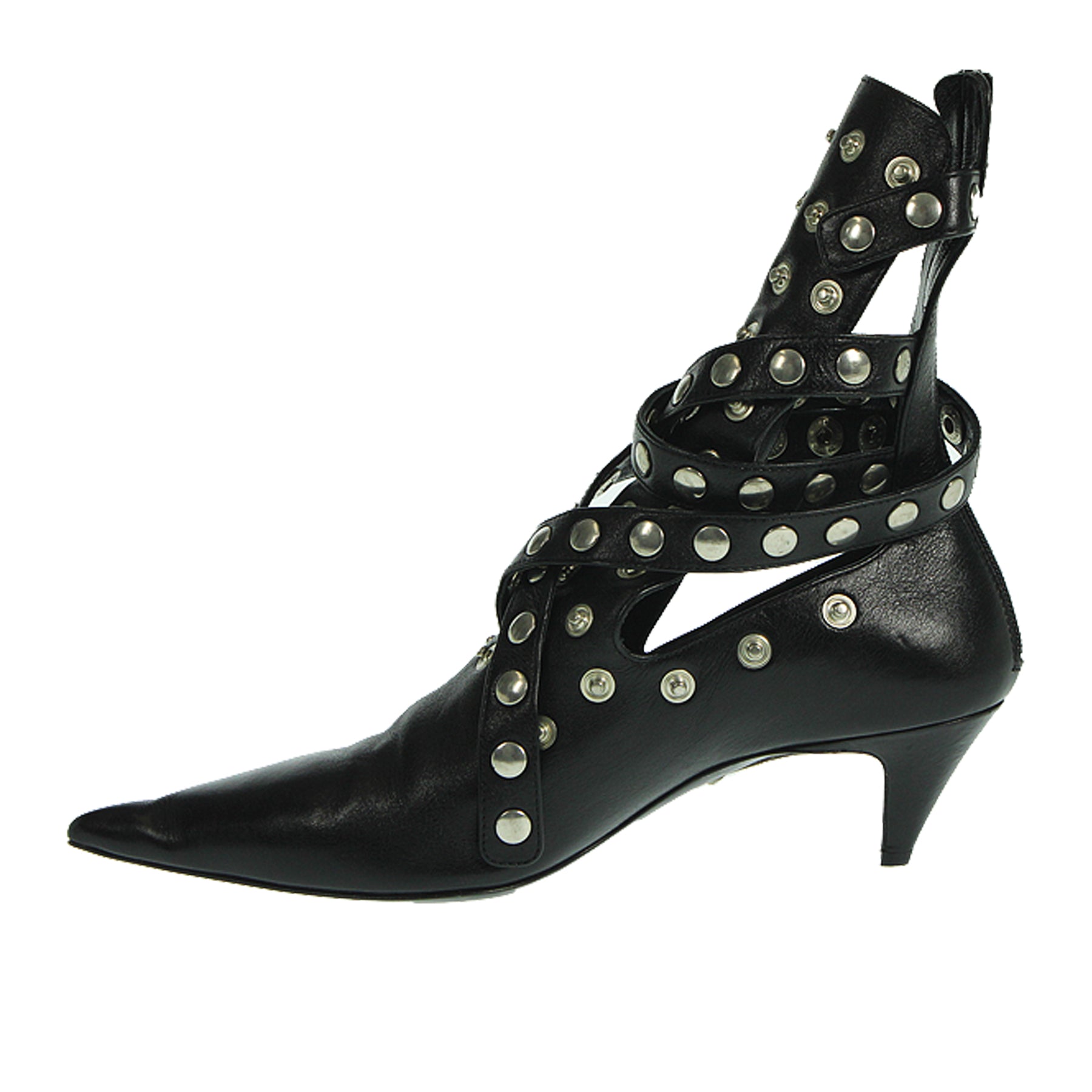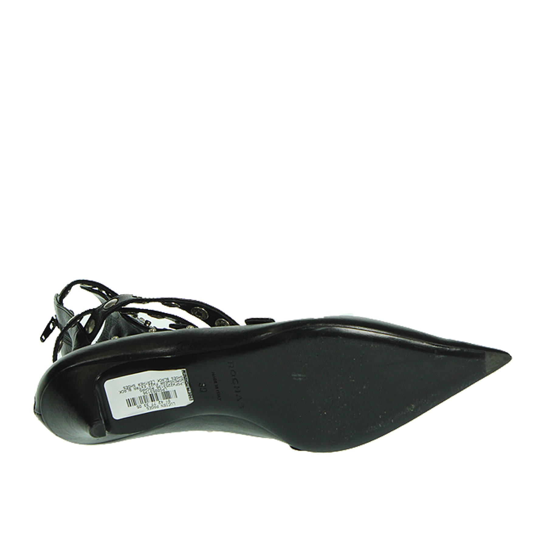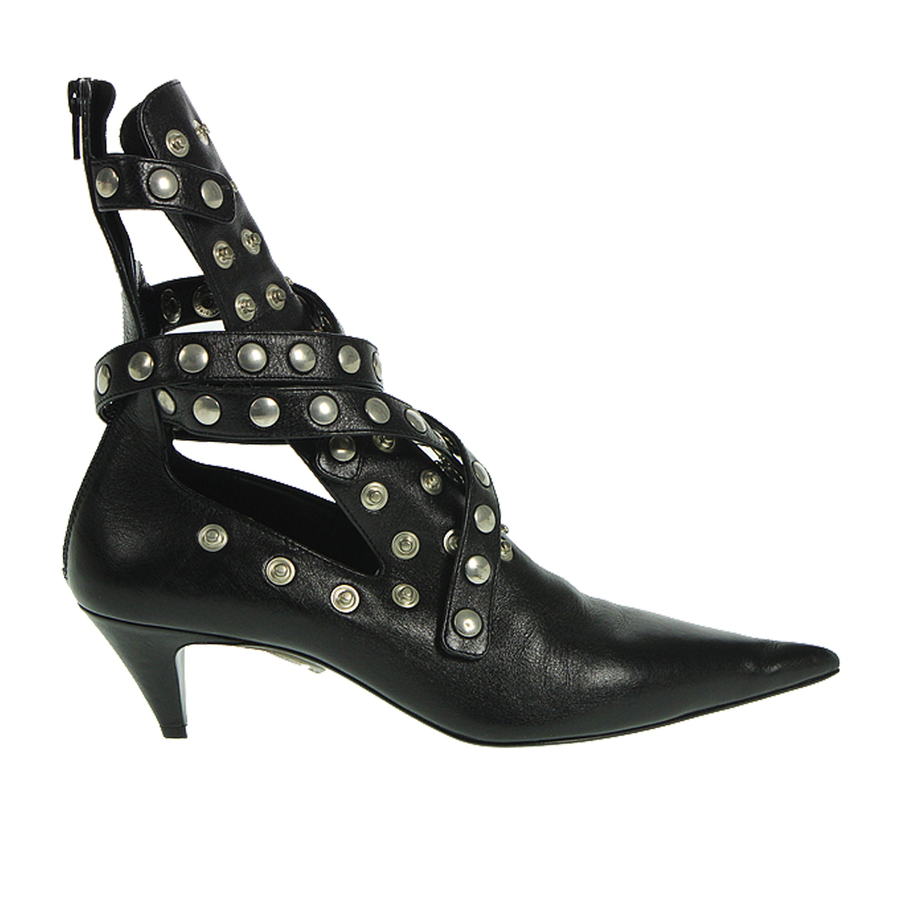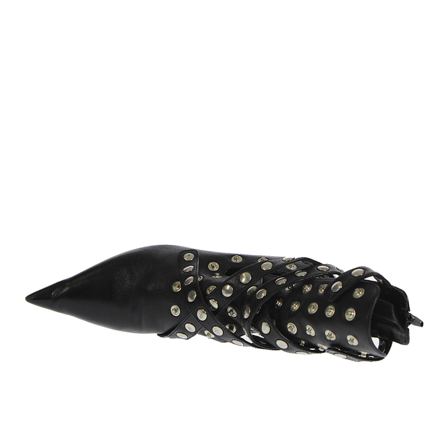 Tronchetto Rochas, in pelle, colorenero, con cinturini regolabili, a punta, zip sul retro, altezza tacco 5,5 cm, suola in cuoio